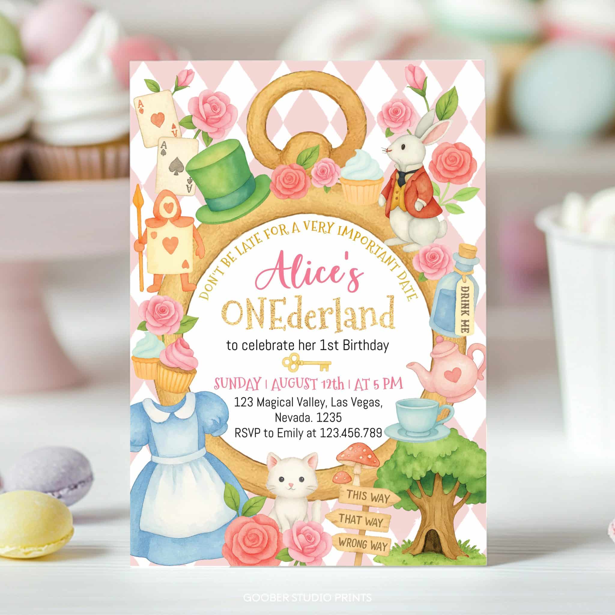 Alice in Onederland 1st Birthday Invitation