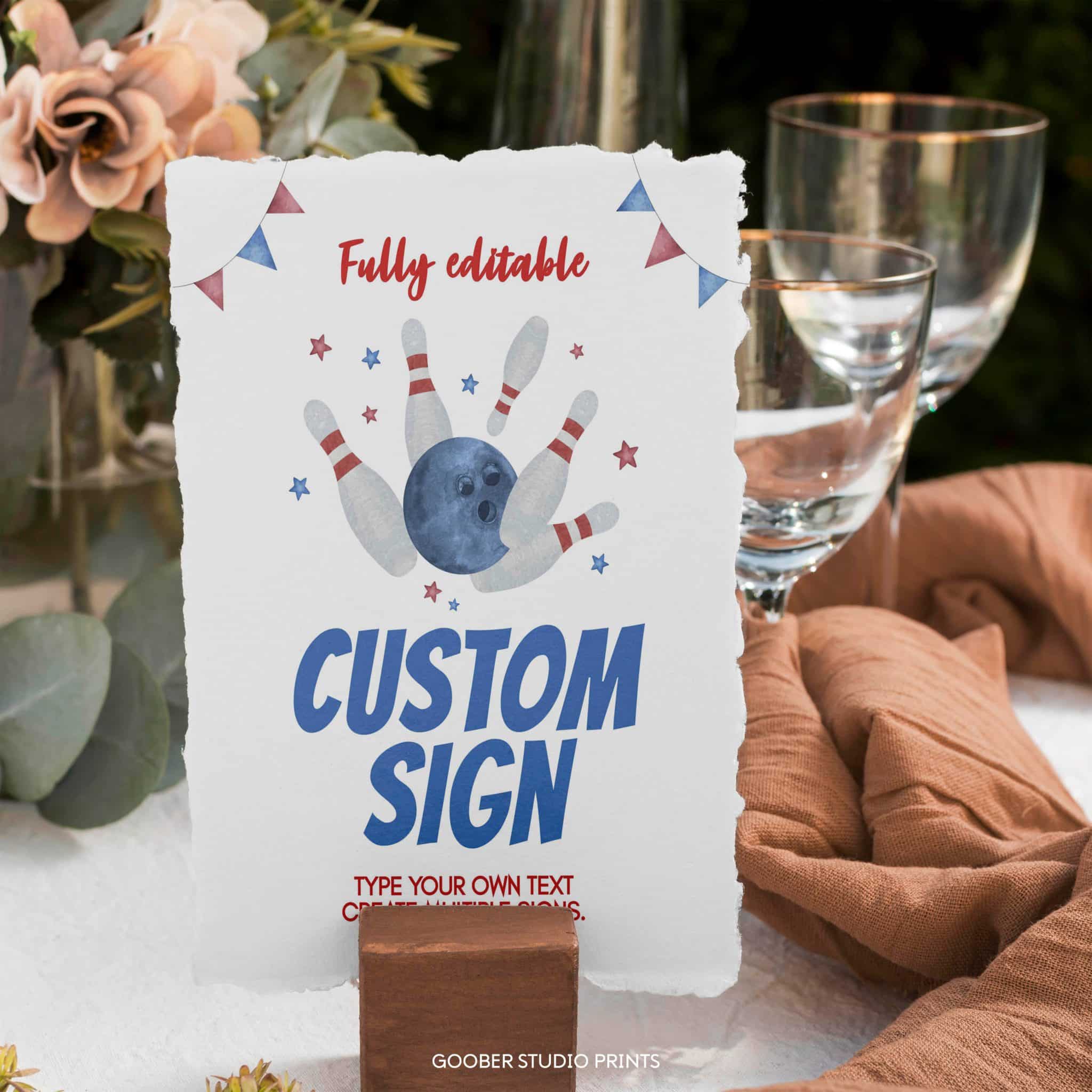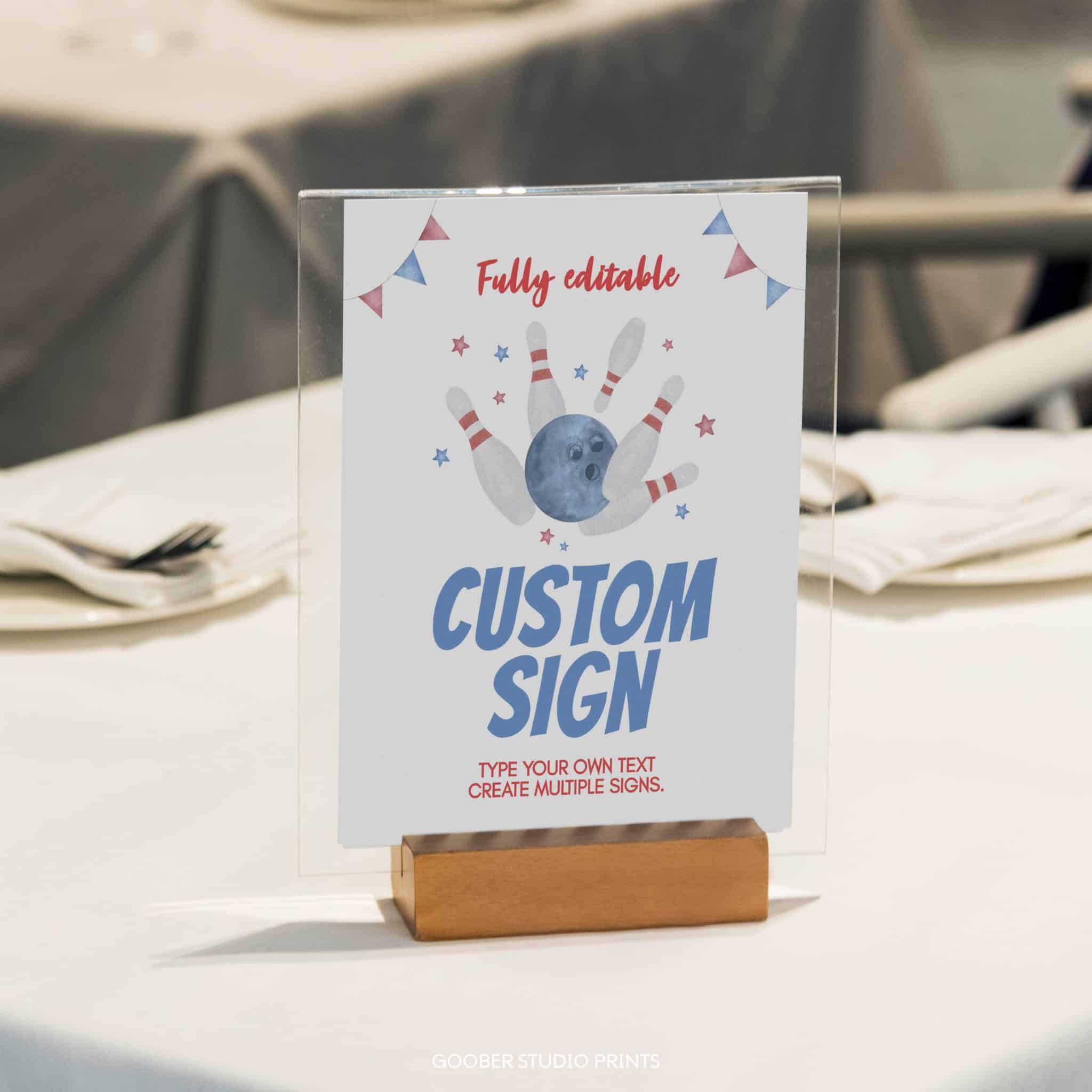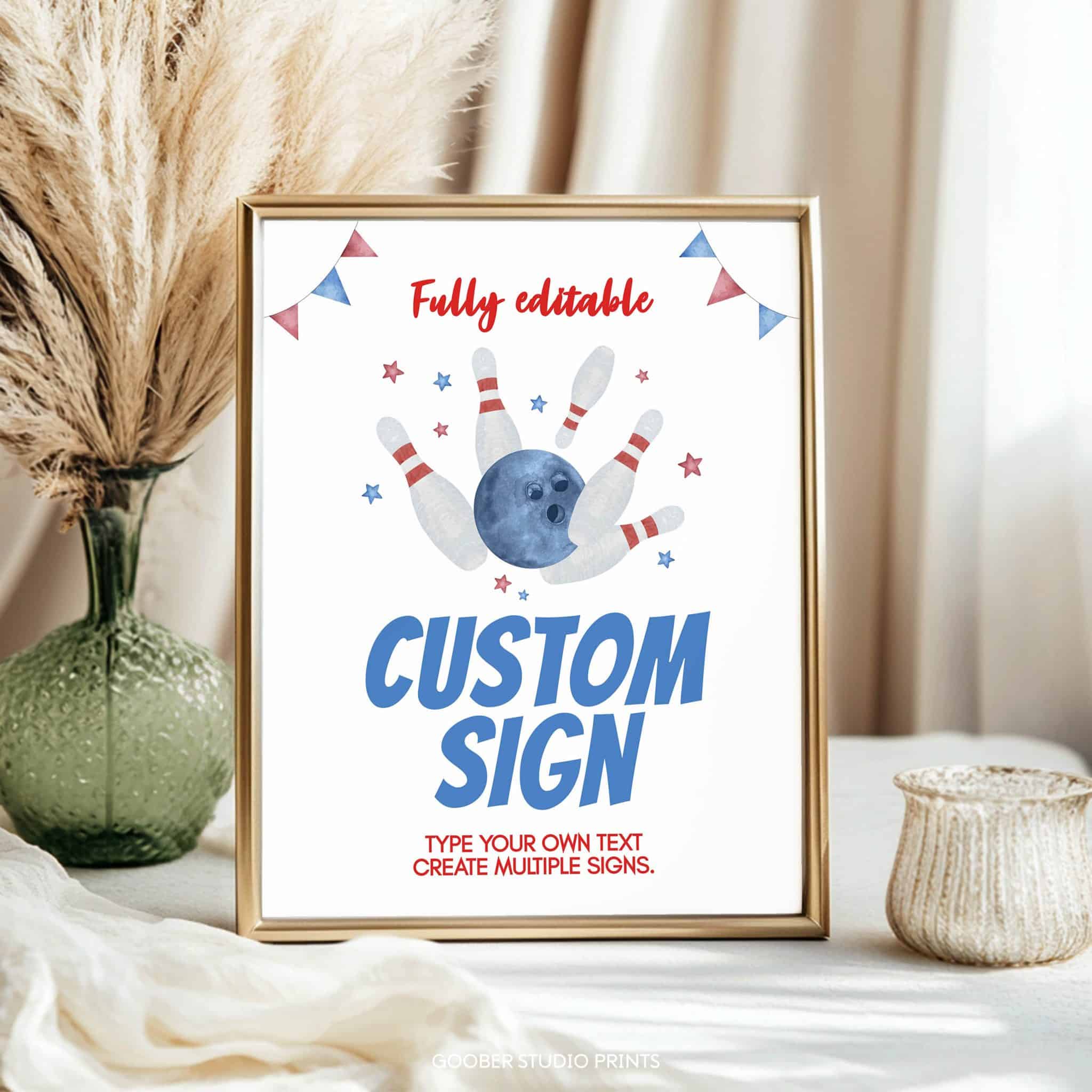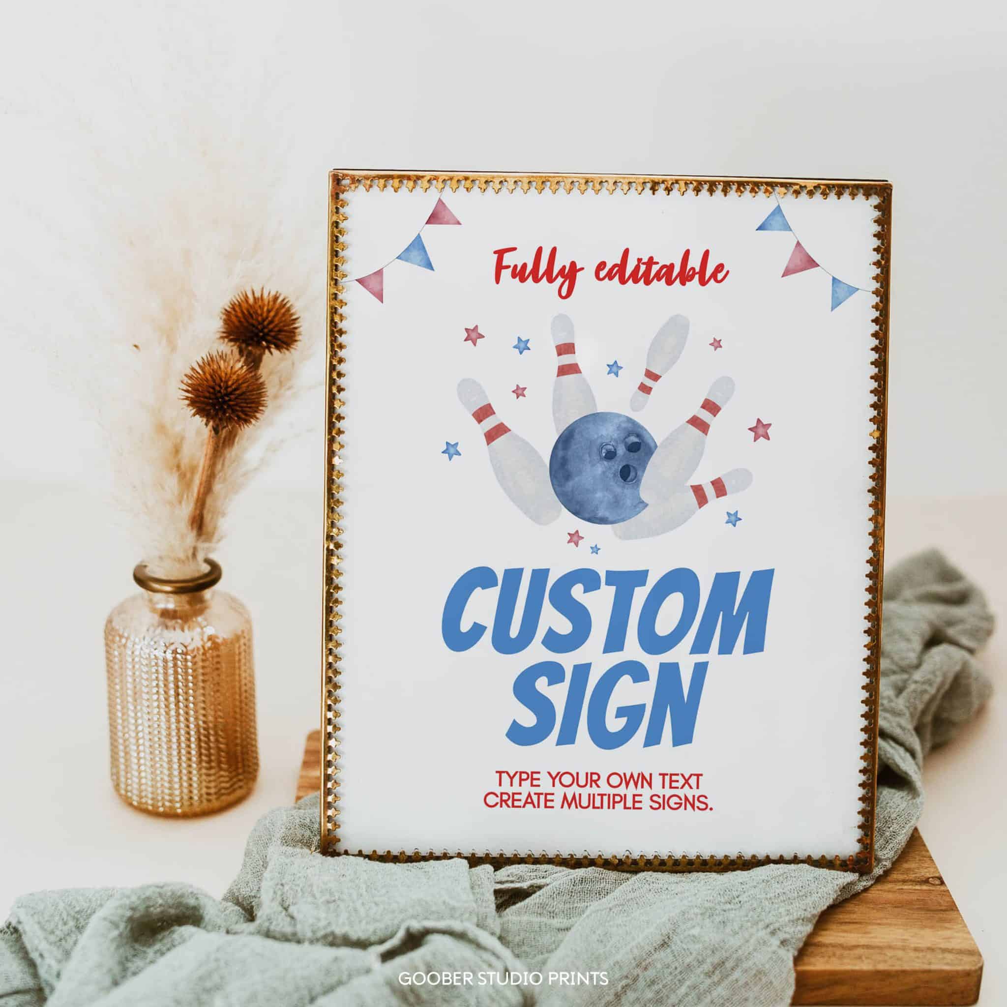 Get the party rolling with our bowling birthday custom sign! This 8×10-inch design features fun bowling graphics, red and blue accents, and playful stars—perfect for a kids birthday party. Fully customizable with any text, name, or age, it works great as a welcome sign, photo prop, or party backdrop. Add it to your boy’s celebration for a striking touch and pair with matching decorations for a fun-filled bowling bash!