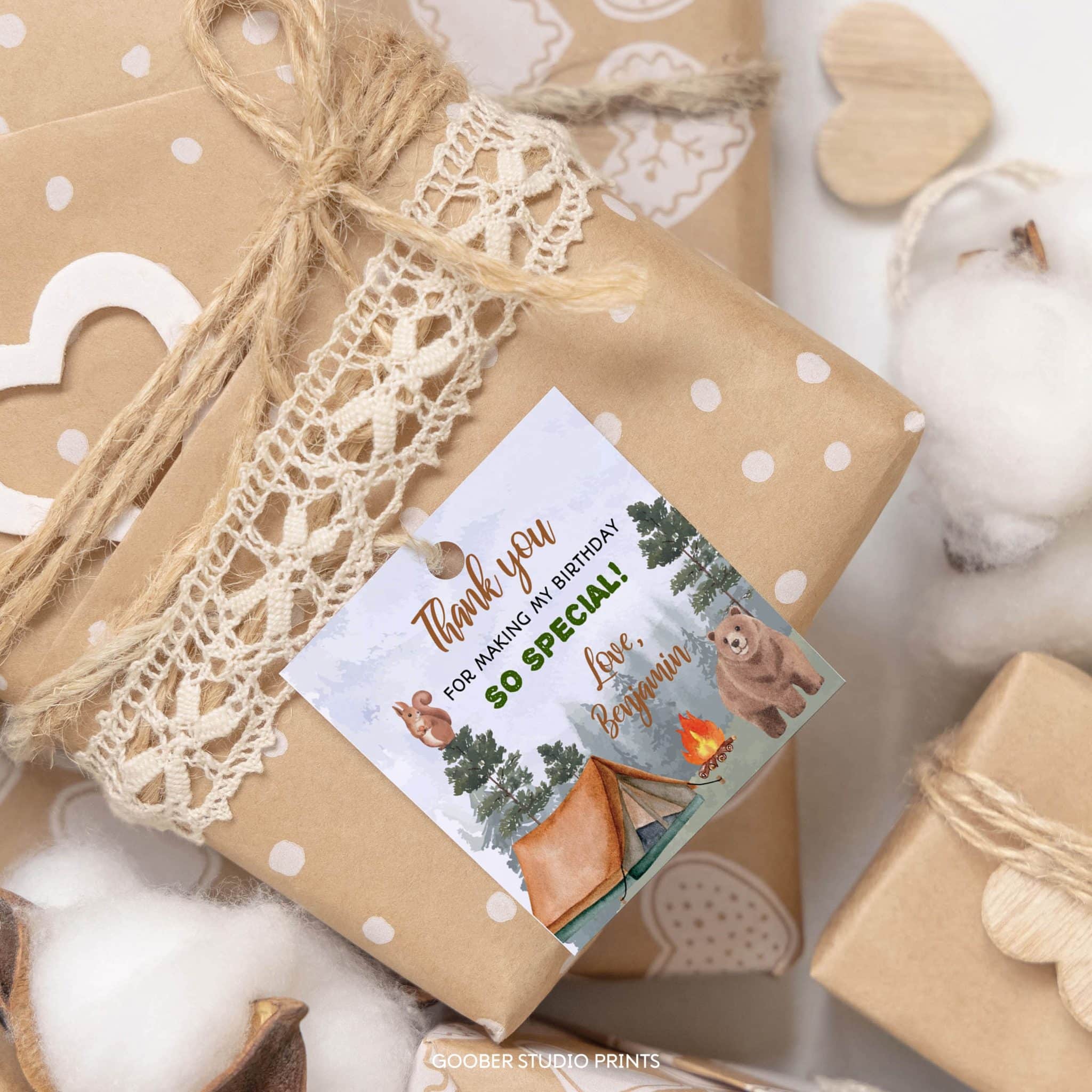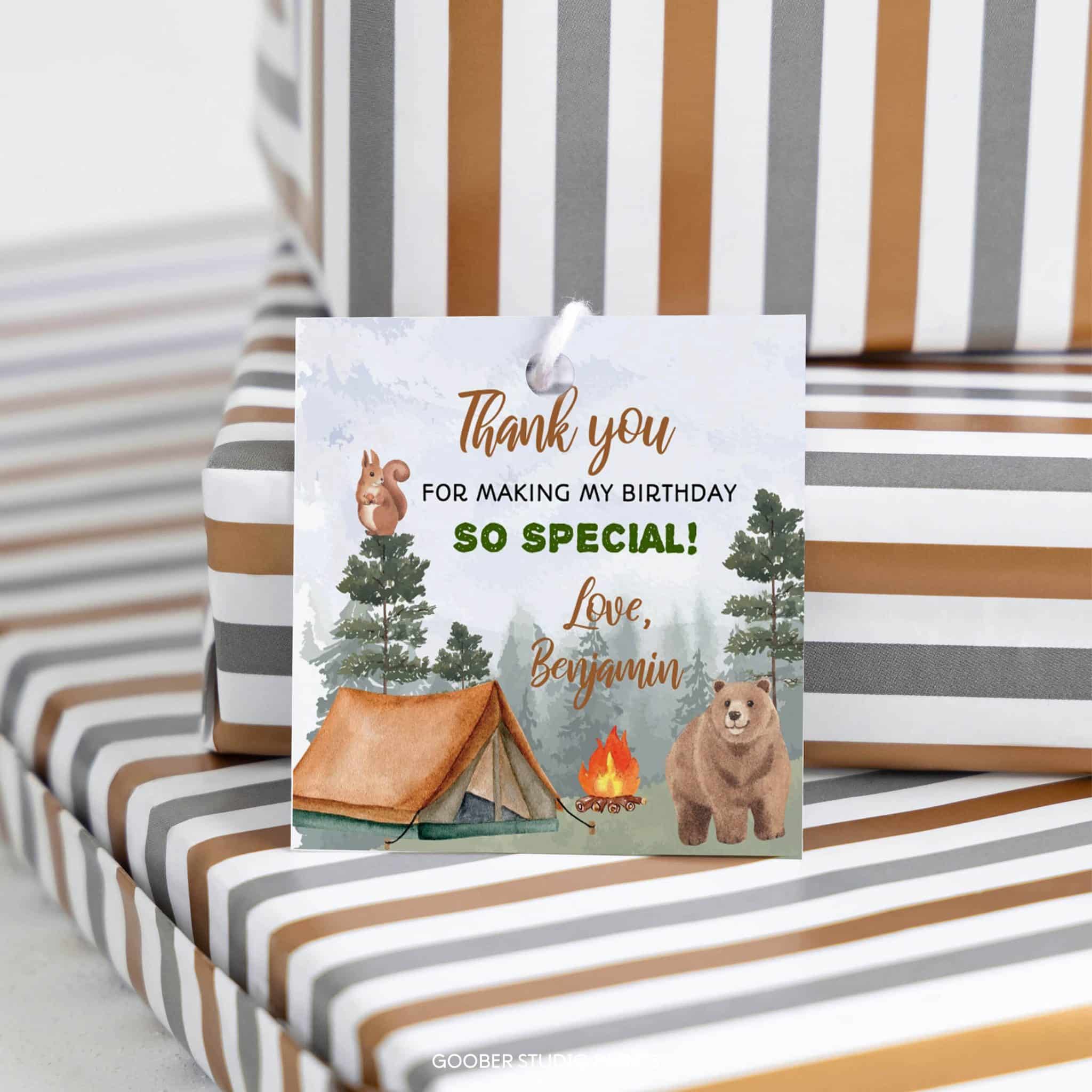 Camping Birthday Party Thank You Favor Tag