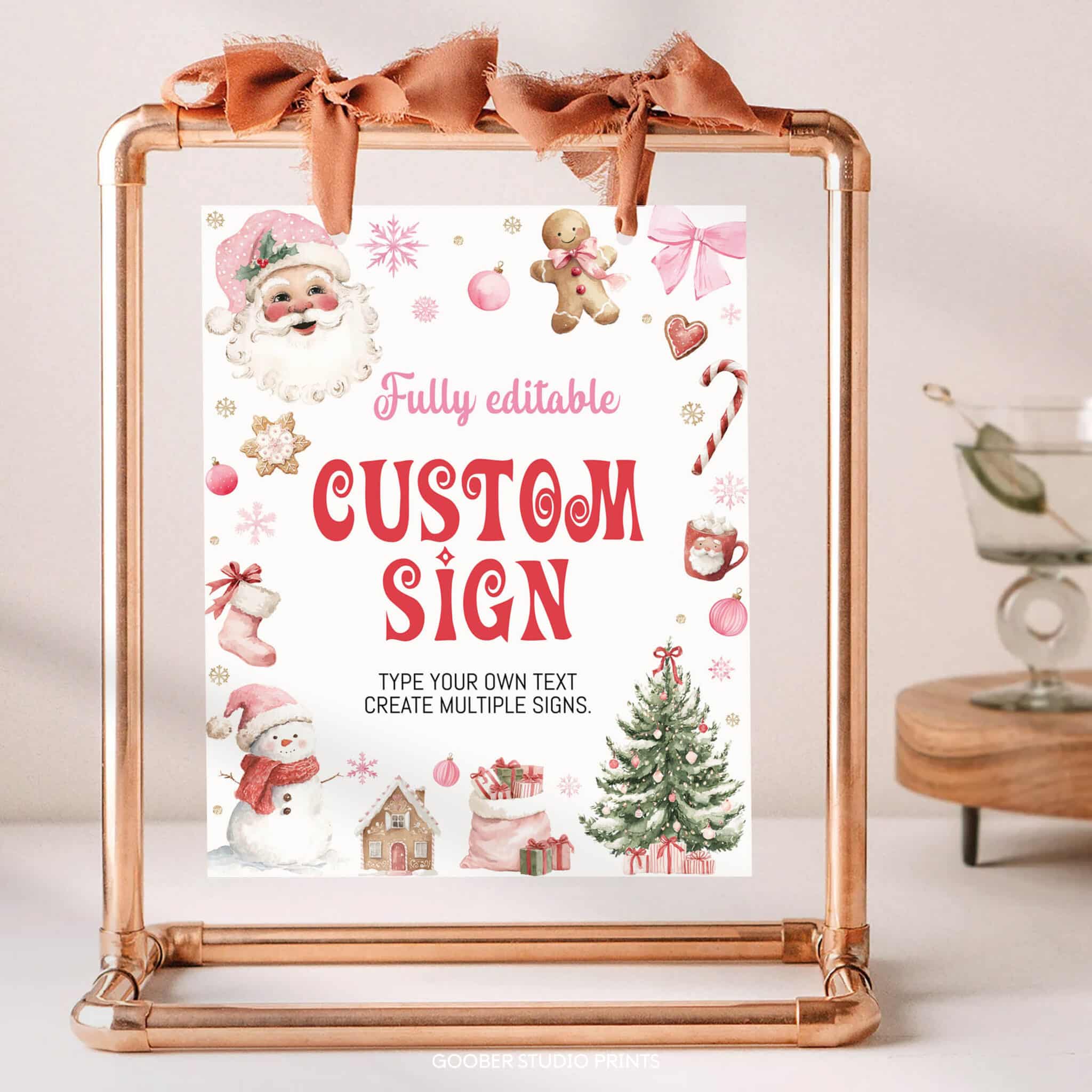Add a festive, oh what fun Christmas birthday touch to your celebration with our custom sign! Perfect for a girl birthday, this 8×10-inch design features Santa Claus, snowy trees, and cozy holiday accents in pink and red with a sweet pink bow. Fully customizable with your child’s name, age, or any special message, it’s ideal as a welcome sign, photo prop, or party backdrop. A joyful and heartwarming addition to your Santa Claus birthday décor, making your little one’s Christmas birthday celebration truly magical!