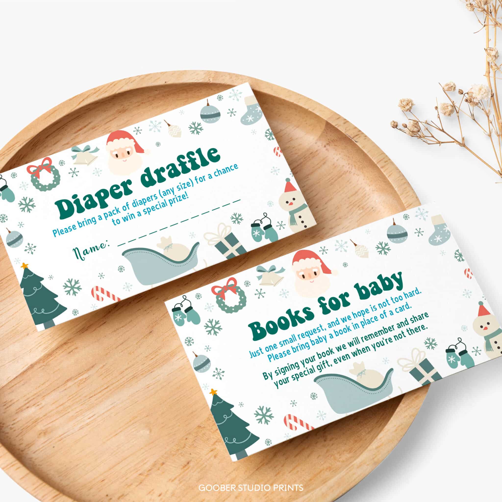 Celebrate your Santa baby with our festive Christmas winter baby shower invitation set! Designed for a baby boy, this charming collection features soft watercolor details with Santa, snowflakes, and cozy Christmas accents—perfect for a joyful winter baby shower celebration. The customizable invitation allows you to add your shower details—date, time, and location—while the coordinating pieces include a diaper raffle card to help the new parents, a Books for Baby card to build a treasured library, and a matching thank-you card for sharing gratitude. A heartwarming Christmas winter baby shower set that captures the magic, sparkle, and love of the season.