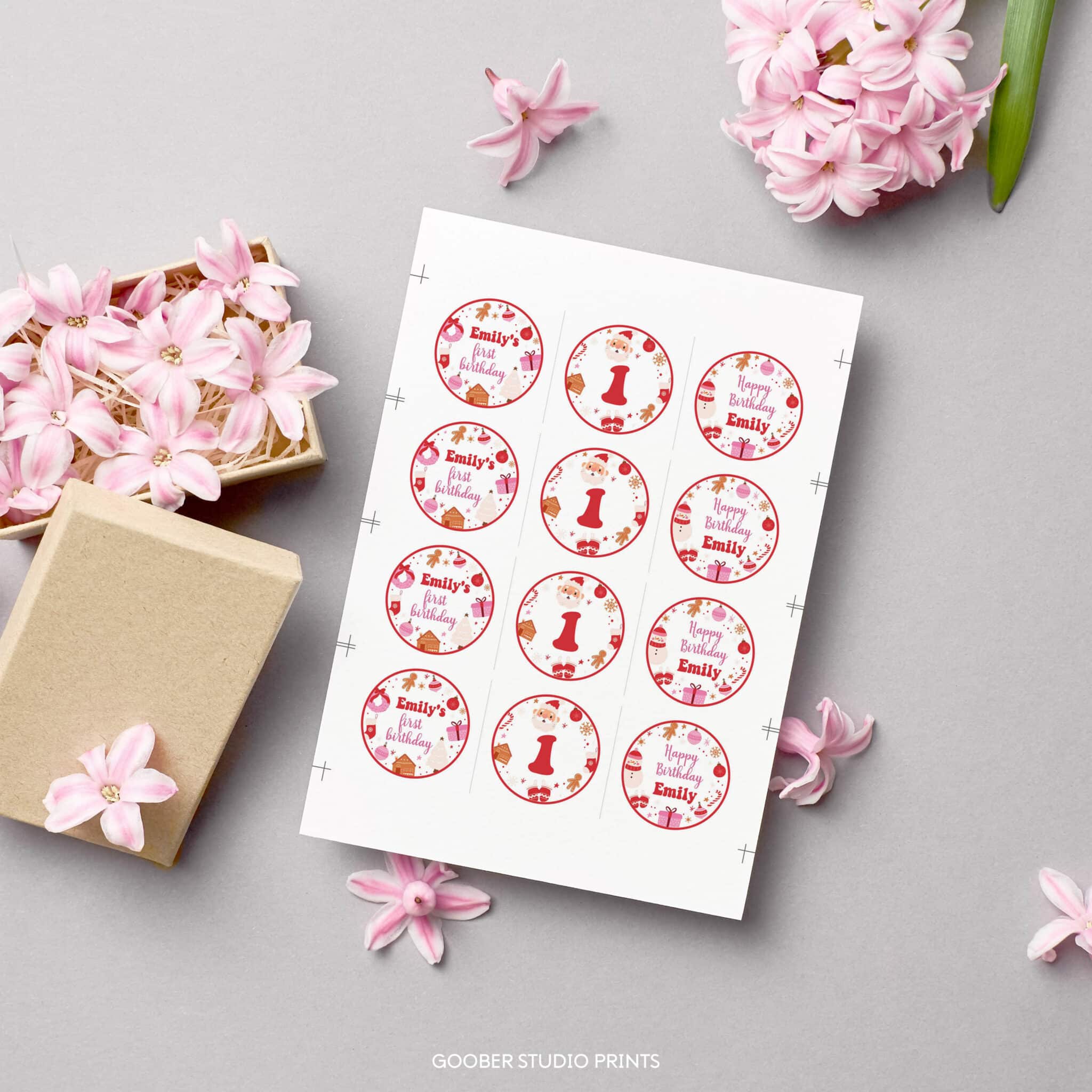 Top off your holiday treats with our Christmas winter birthday cupcake toppers! Perfect for a girl birthday celebration, these festive toppers feature Santa, sparkling snowflakes, and cozy Christmas details in a charming watercolor design. Personalize with your child’s name and age to make them extra special. Easy to print at home on standard cardstock, they’re perfect for cupcakes, cake pops, muffins, and more. A fun, oh what fun, and budget-friendly way to add cheerful holiday magic to your winter birthday celebration!