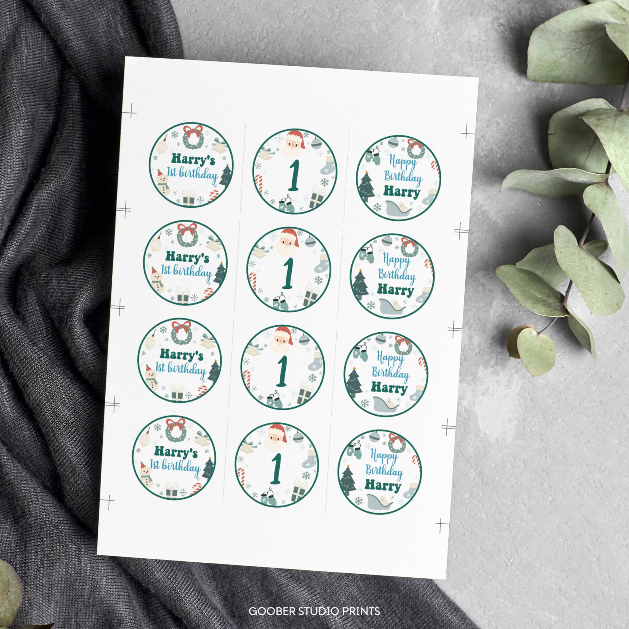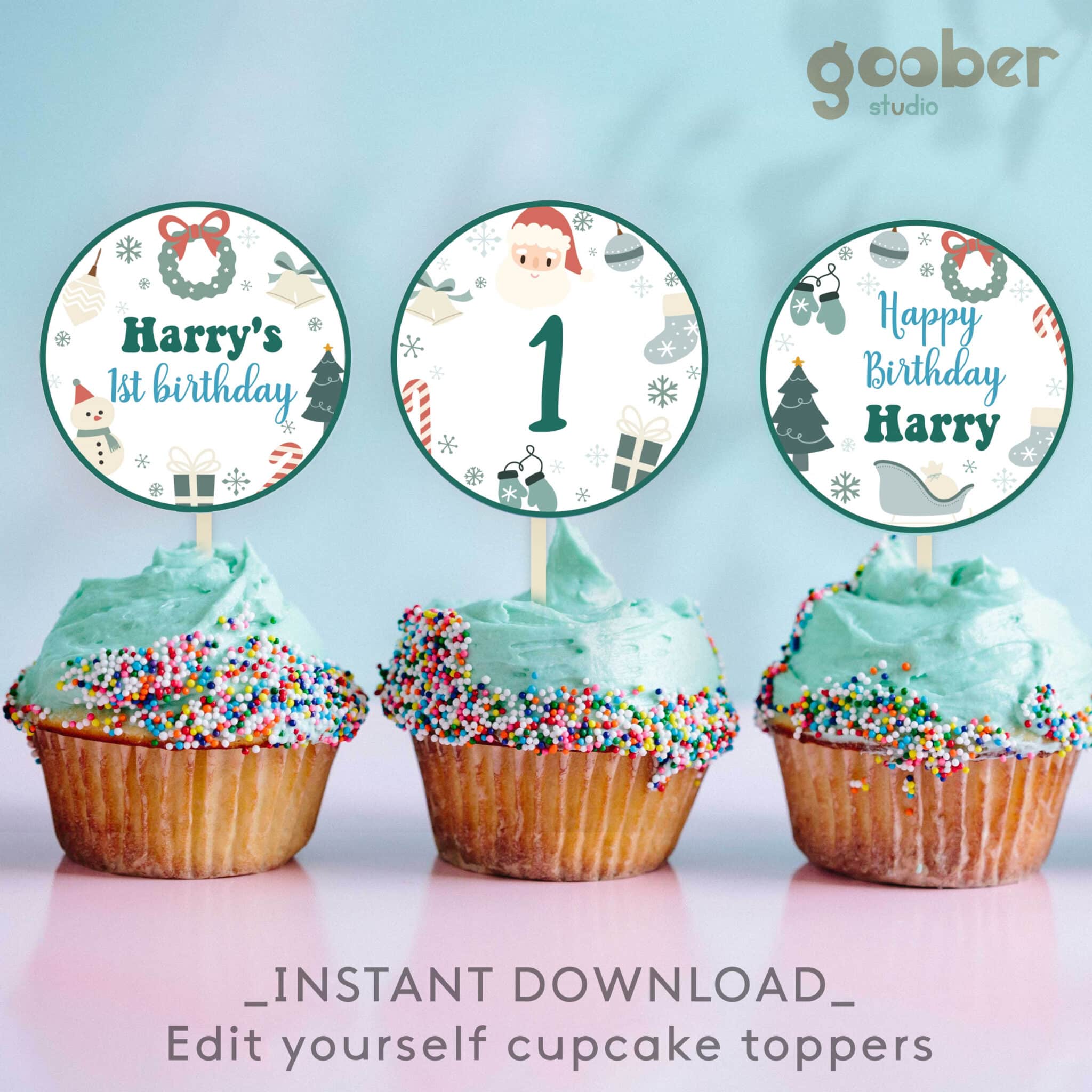 Top off your holiday treats with our Christmas winter birthday cupcake toppers! Perfect for a boy birthday celebration, these festive toppers feature Santa, sparkling snowflakes, and cozy Christmas details in a charming watercolor design. Personalize with your child’s name and age to make them extra special. Easy to print at home on standard cardstock, they’re perfect for cupcakes, cake pops, muffins, and more. A fun, oh what fun, and budget-friendly way to add cheerful holiday magic to your winter birthday celebration!
