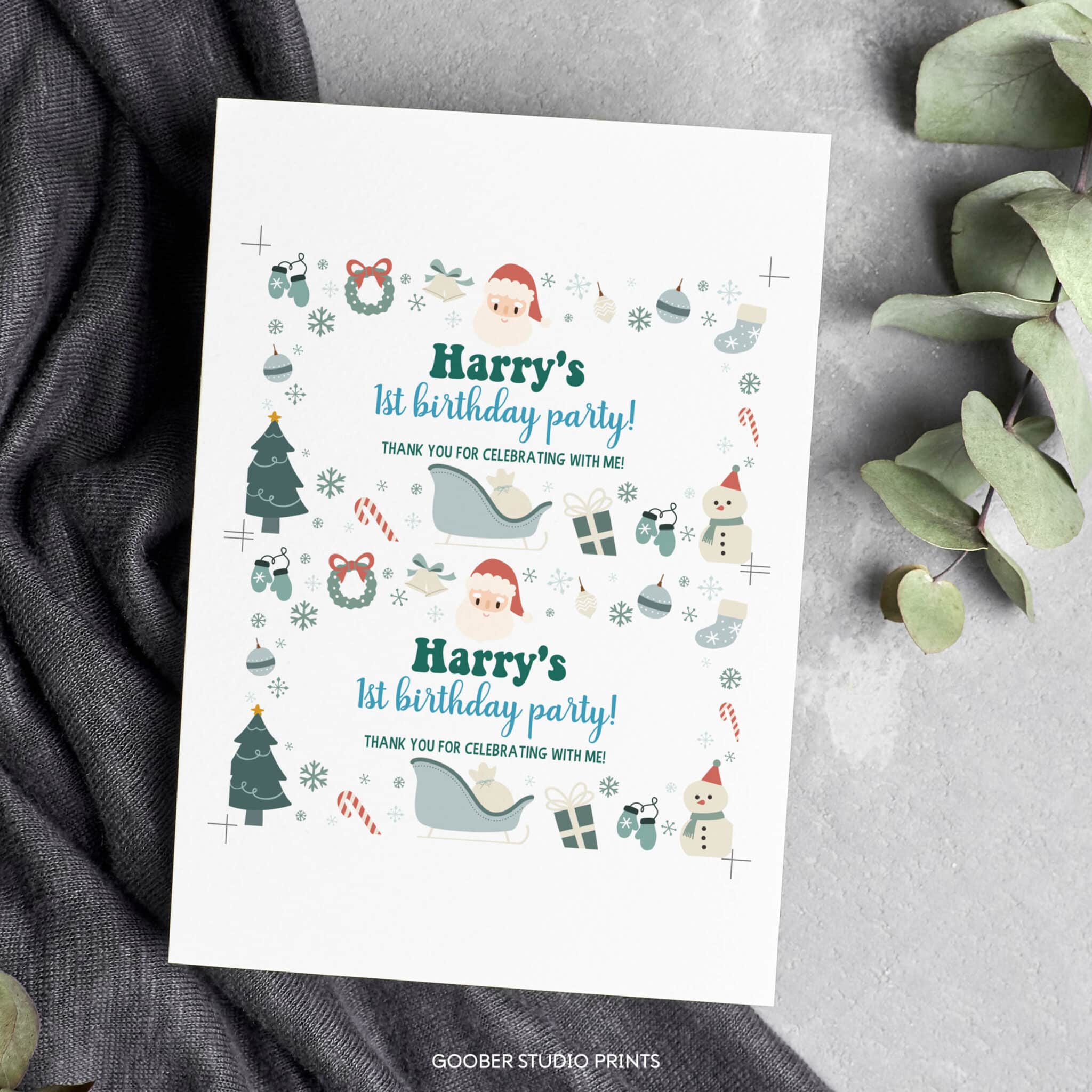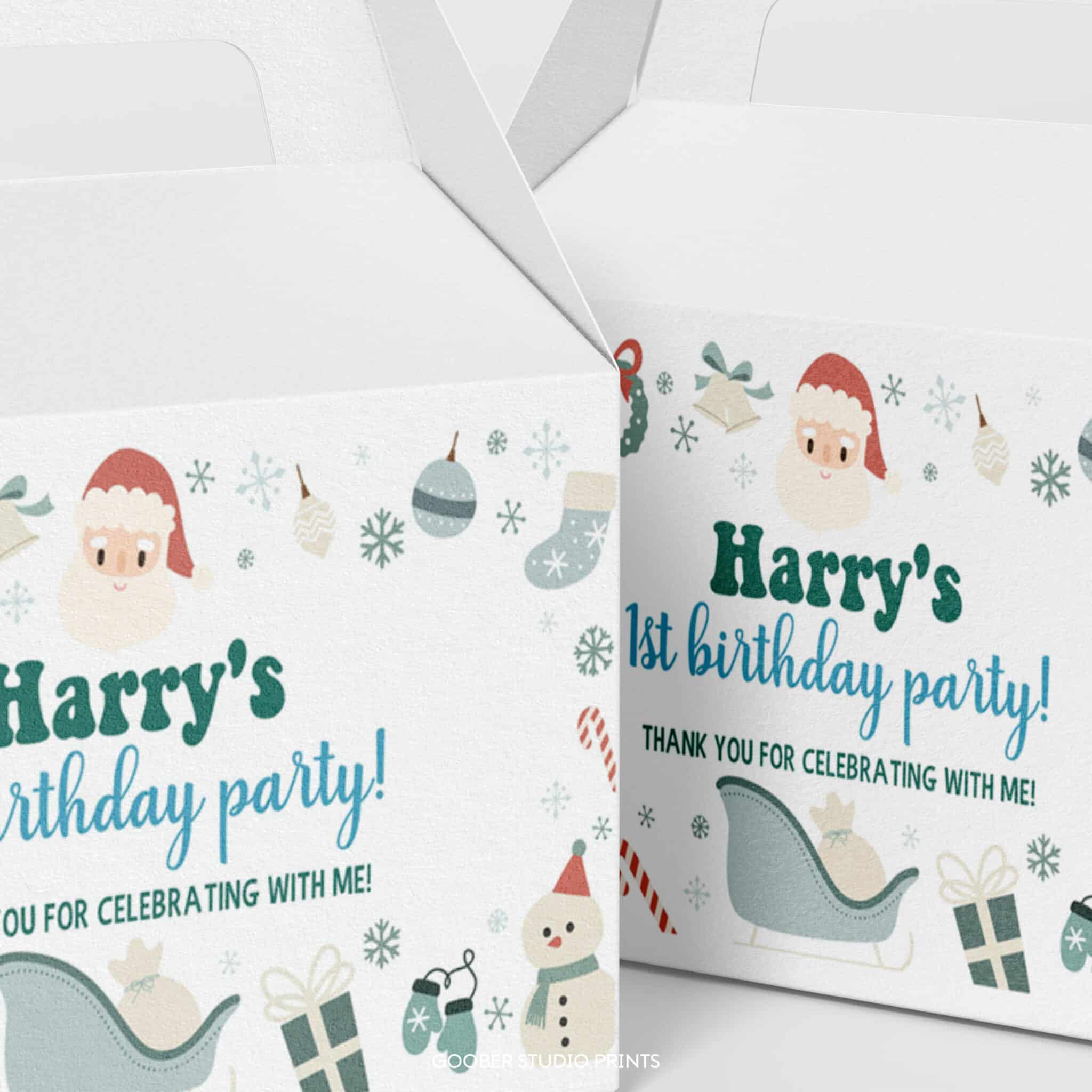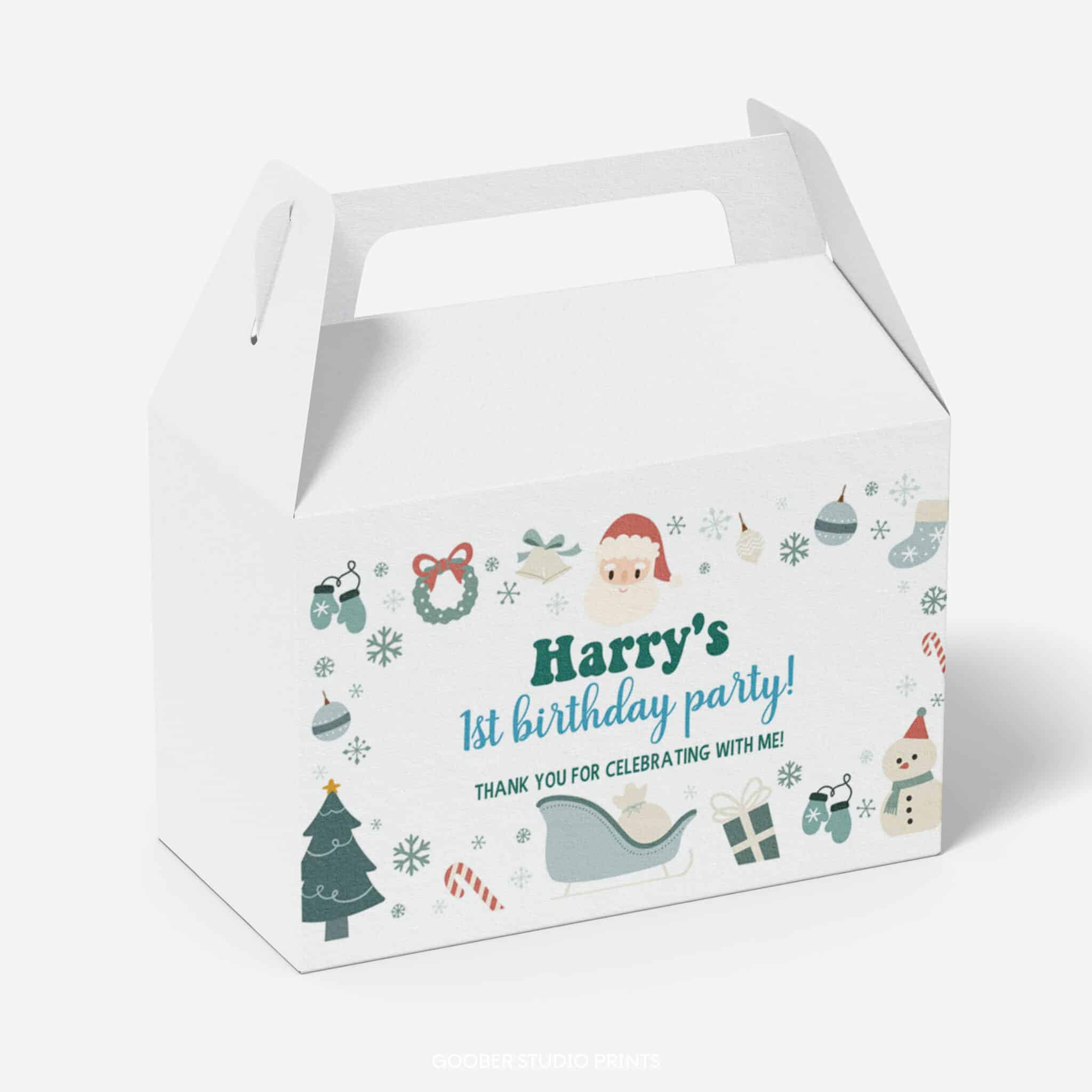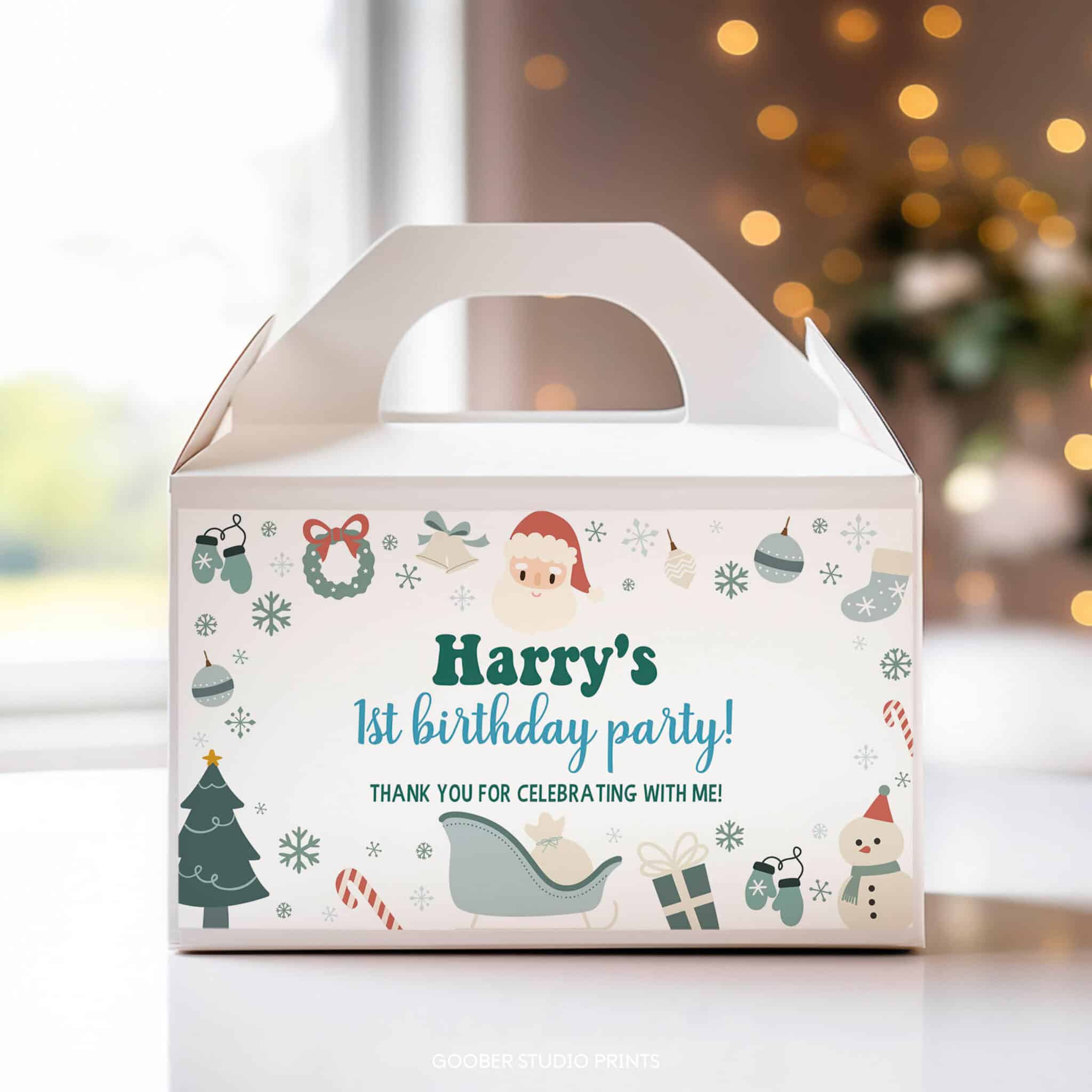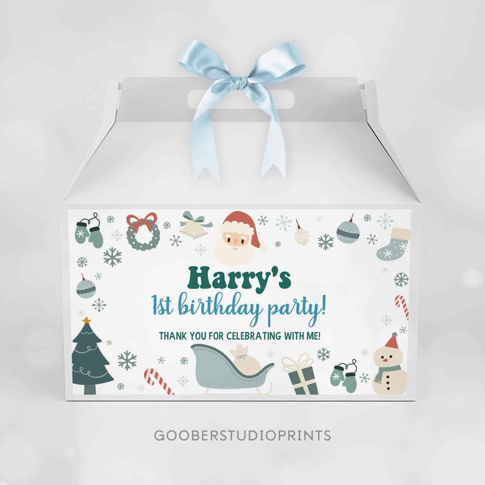 Add an oh what fun holiday touch to your party favors with our Christmas winter birthday gable box labels! Perfect for a boy birthday celebration, these festive labels feature Santa, sparkling snowflakes, and cozy Christmas details in a charming watercolor design. Personalize with your child’s name and age to make each favor extra special. Easy to print at home on standard paper, they attach perfectly to gable boxes—creating delightful, personalized treats that complete your Christmas winter birthday celebration in merry style!