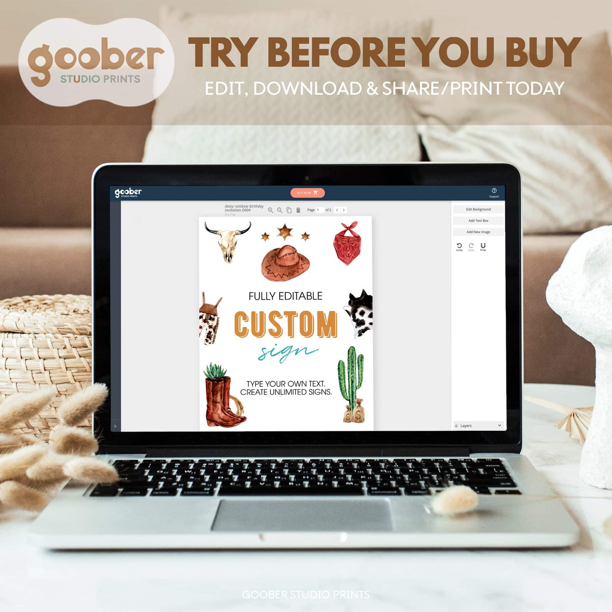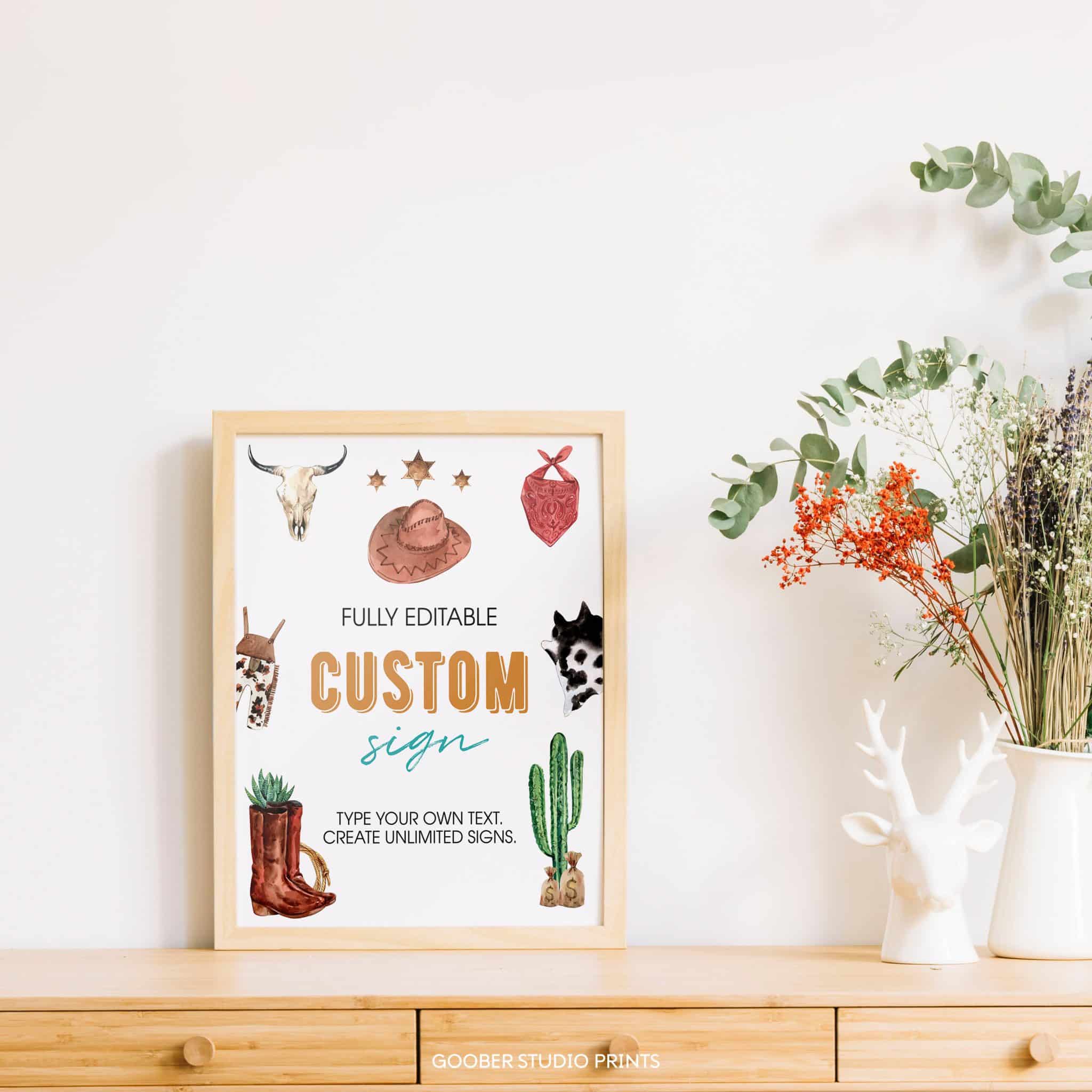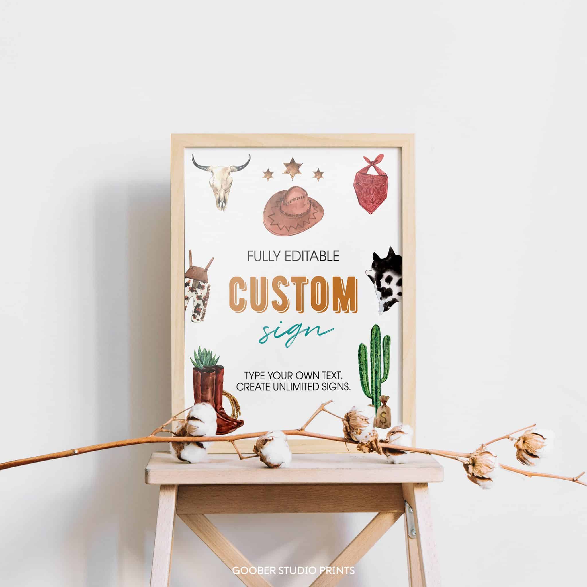 Liven up your first rodeo birthday celebration with our custom cowboy-themed sign! Ideal as a welcome sign, photo prop, or festive party decor, this 8×10 design features bold western accents and can be fully personalized with your details. Pair it with coordinating western theme party supplies for a fun and cohesive first rodeo look that guests will love!