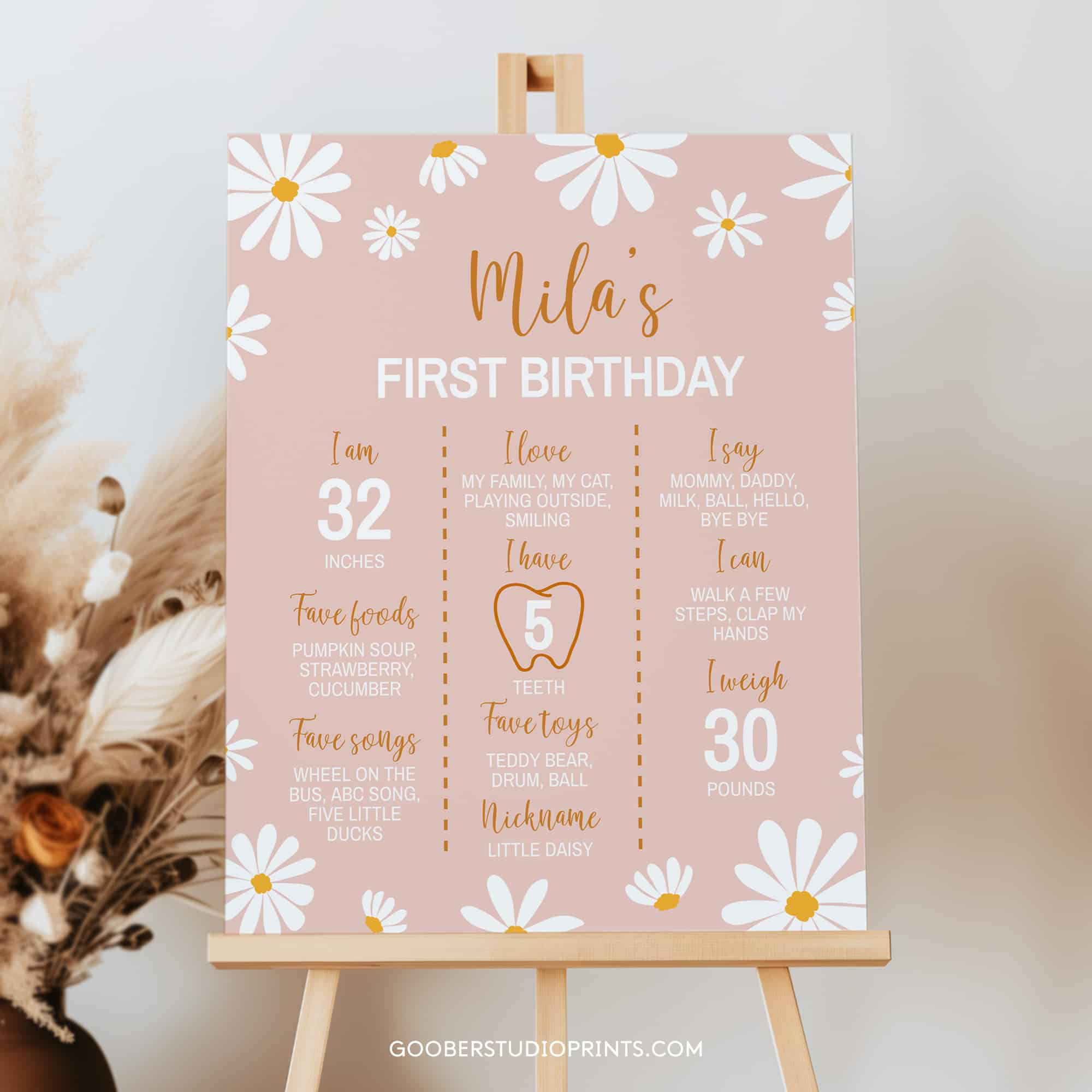 Our Daisy printable birthday milestone poster is the perfect way to celebrate and document a special birthday. The design features a unique and memorable Colorful Daisy theme with space for your child’s name, special milestones, achievements, and memories from their life so far. This poster can be easily printed at home on standard poster paper. It’s a great way to celebrate a milestone birthday and to create a lasting memento of the special occasion.