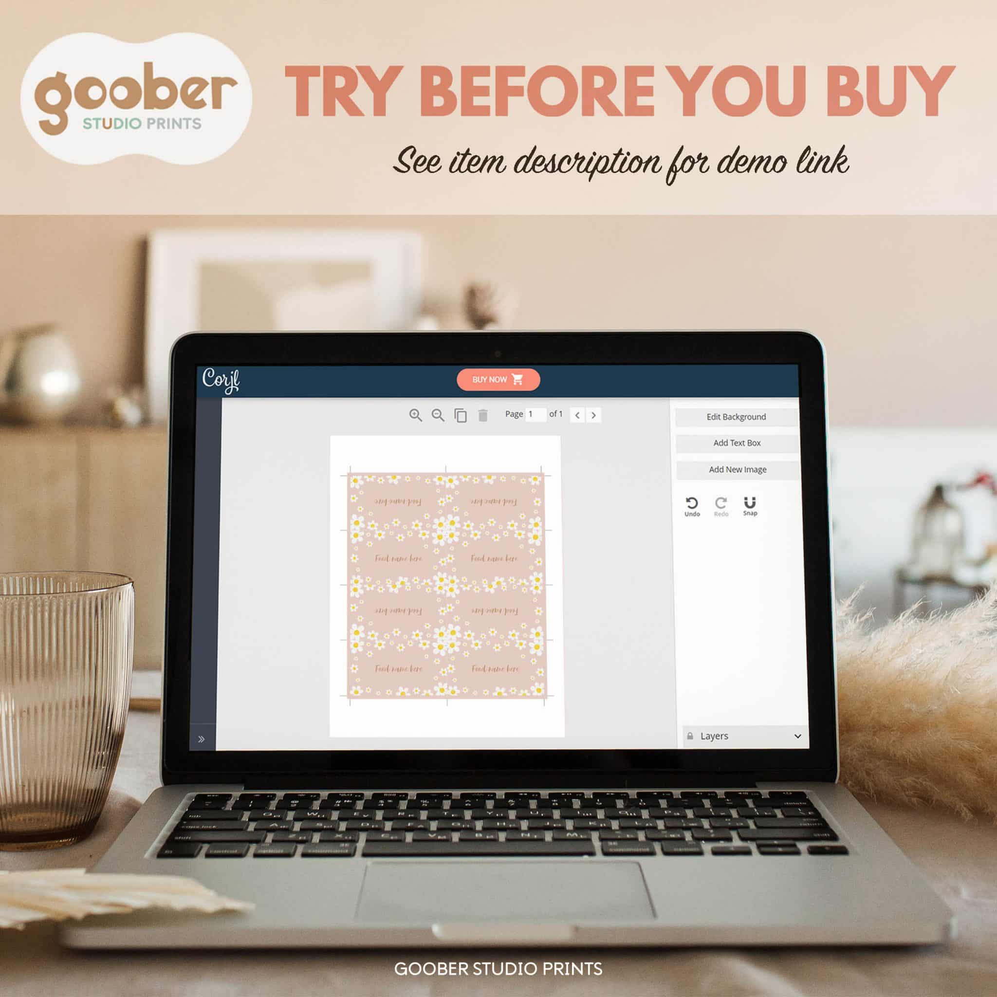 2. The Corjl template can be edited on your computer through a web browser. There is no additional software needed. You can edit the text, font color and size.