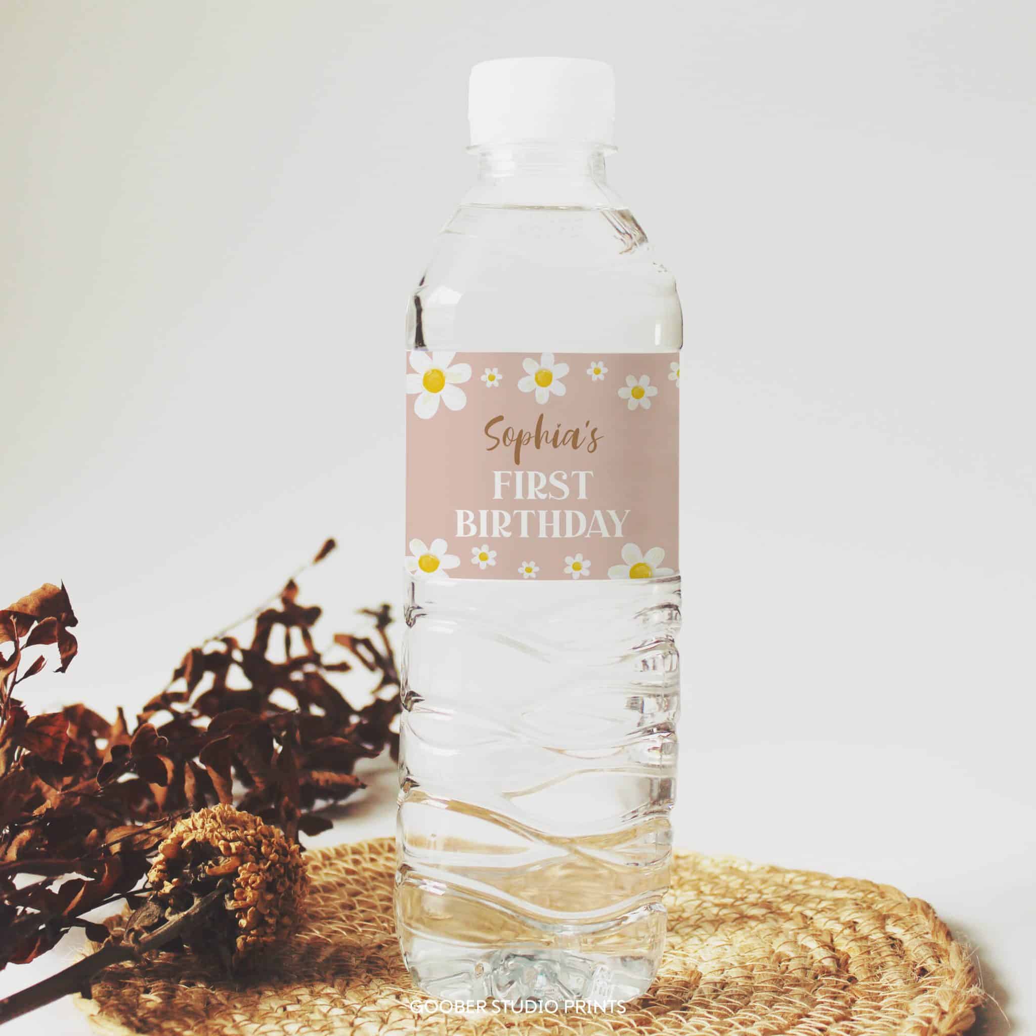 Add a charming touch to your party drinks with our daisy-themed water bottle labels! Featuring delicate daisy illustrations, and a vintage-inspired design, these labels can be personalized with your little one’s name and age. Designed to fit standard 8.5”x2” bottles, they’re easy to print at home and perfectly complement your daisy party decorations, making your celebration bloom with elegance.