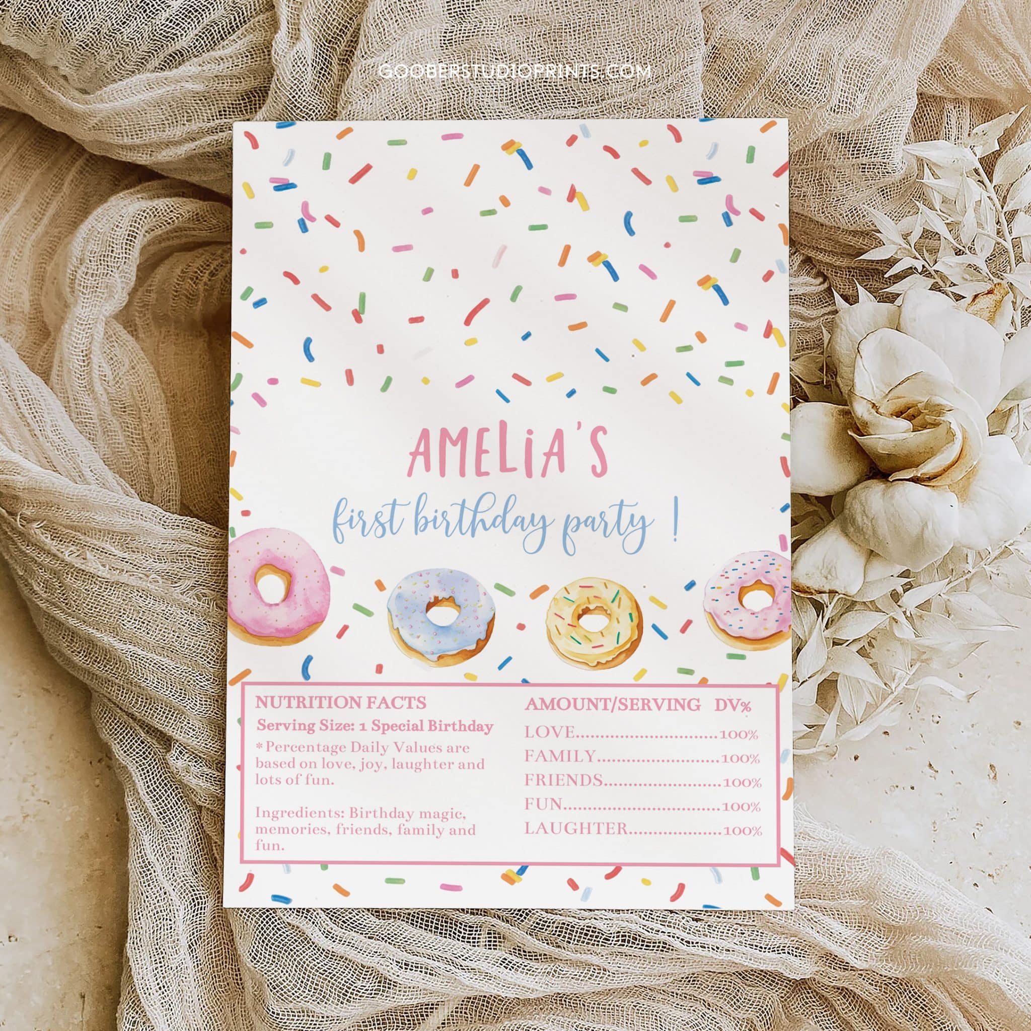 An access link to your editable donut birthday chocolate bar wrapper designs will be sent to your e-mail address. The link allows you to edit, save and download your design as JPG or PDF file. The design includes printing options for two different standard chocolate bar sizes: