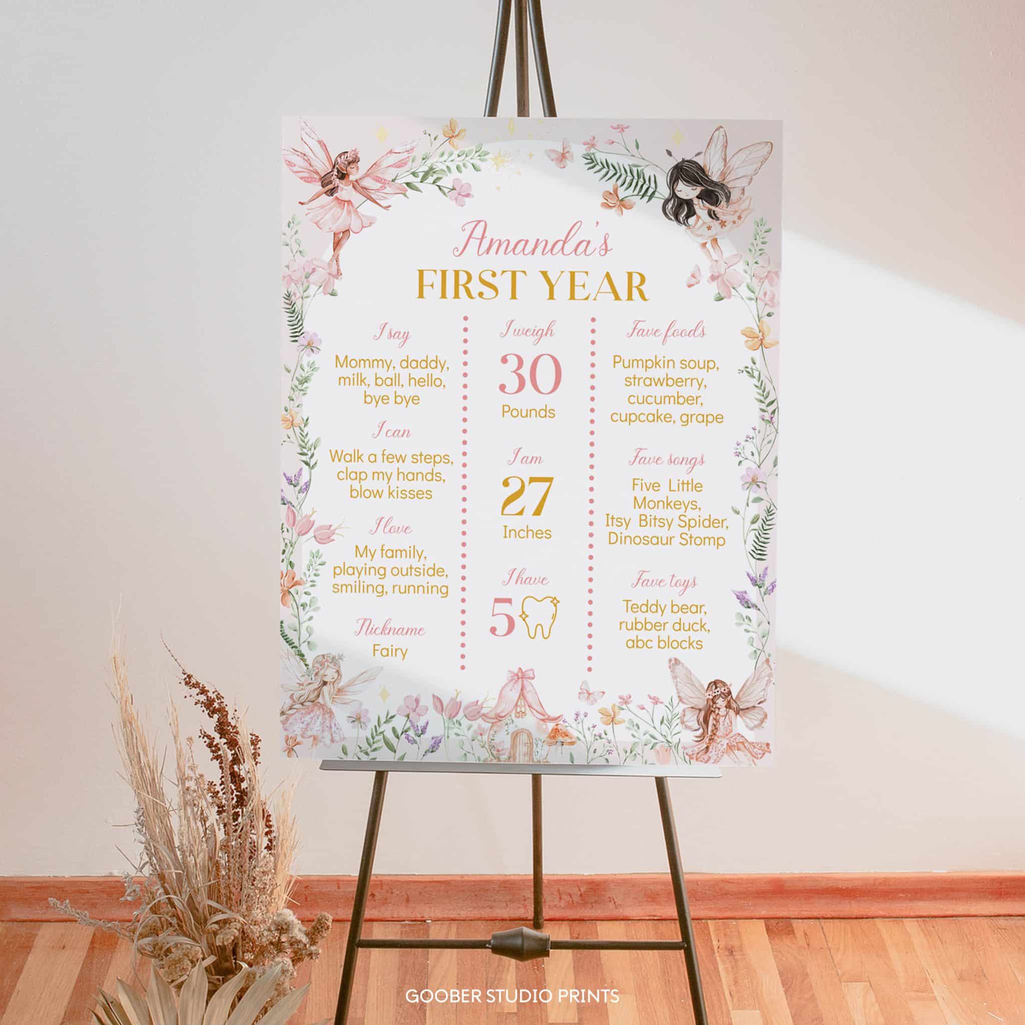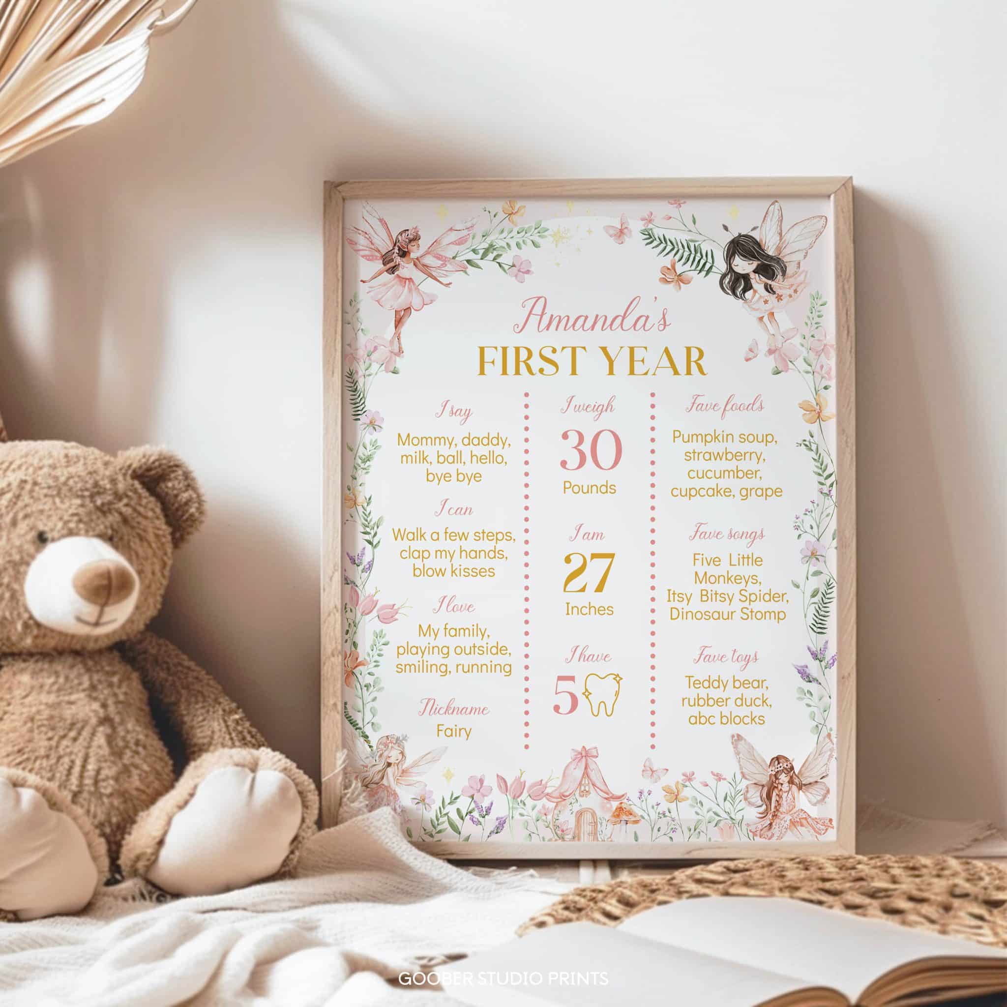 Commemorate your little one’s special day with our enchanted forest fairytale milestone poster! Adorned with whimsical fairies, delicate pink floral accents, and a touch of spring garden charm, this magical design includes space for your child’s name, milestones, and cherished memories. A beautiful keepsake, it’s the perfect way to celebrate a fairy birthday and create lasting memories of this enchanting occasion!