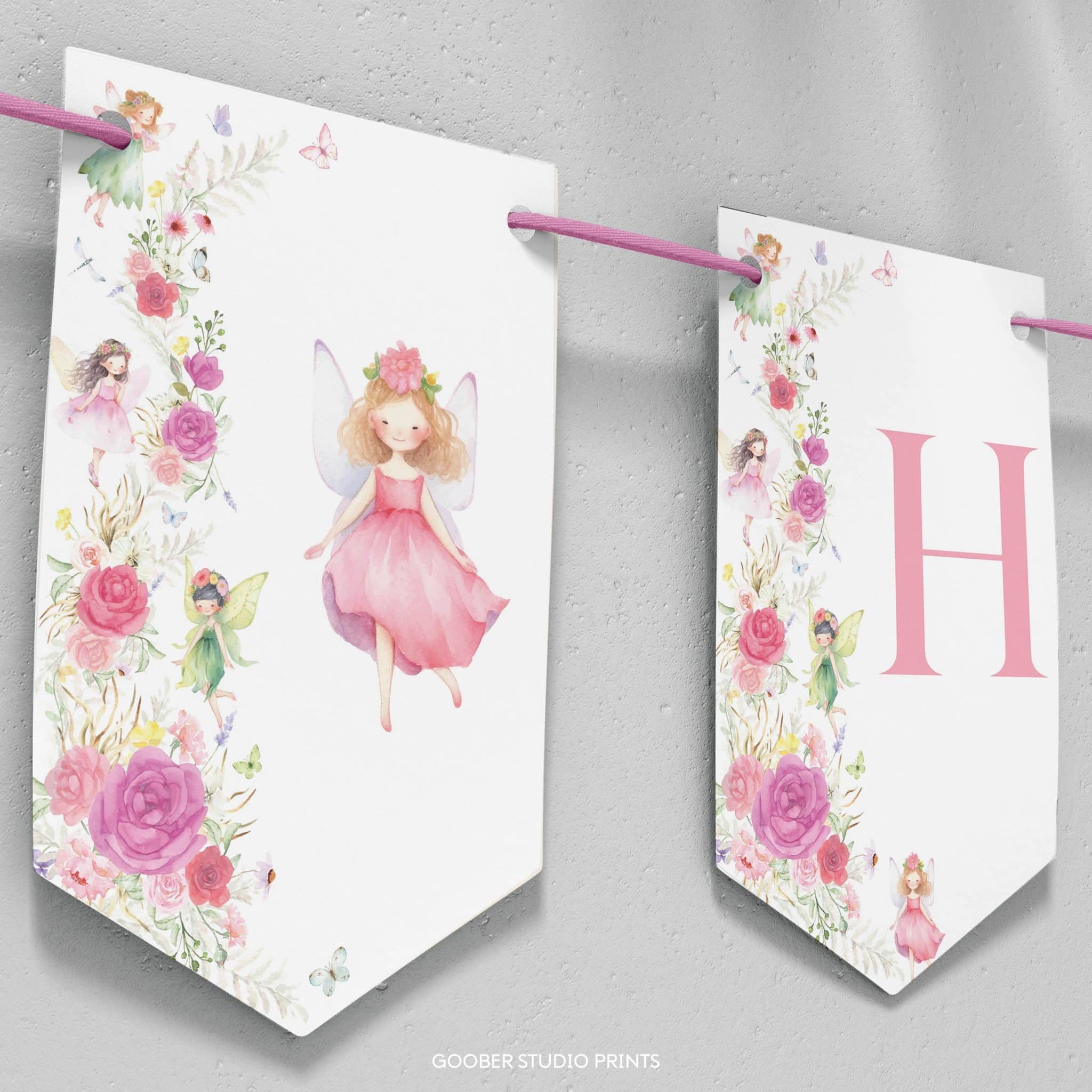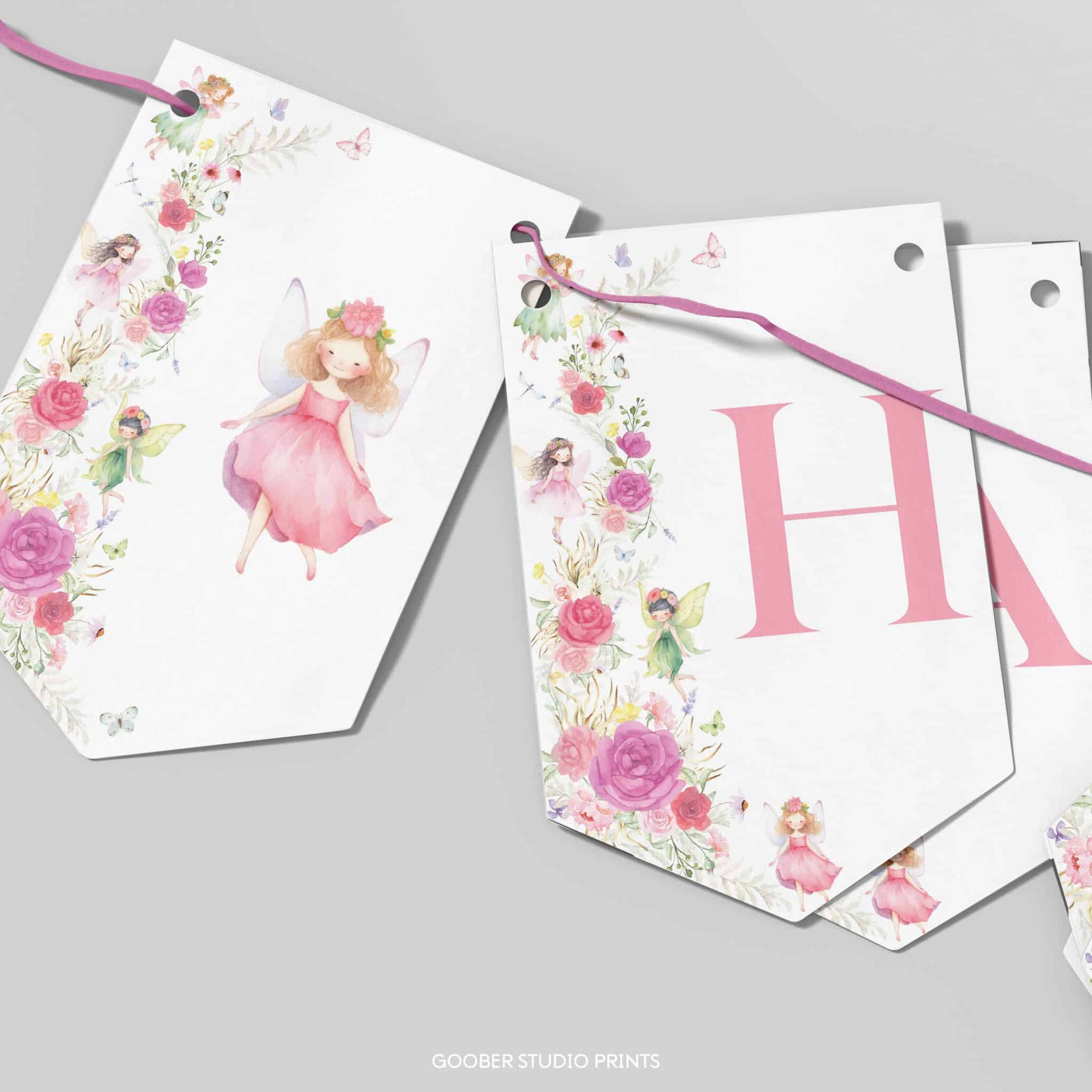 Add a touch of magic to your celebration with our fairy birthday banner! Featuring a whimsical fairy design and delicate floral accents in soft pink hues, this banner spells out ‘happy birthday’ in enchanting style. Easily customizable to include the birthday person’s name and age, it can be printed at home on standard paper and displayed to create a magical, fairy-tale atmosphere. Bring charm and wonder to your special day with this delightful decoration!