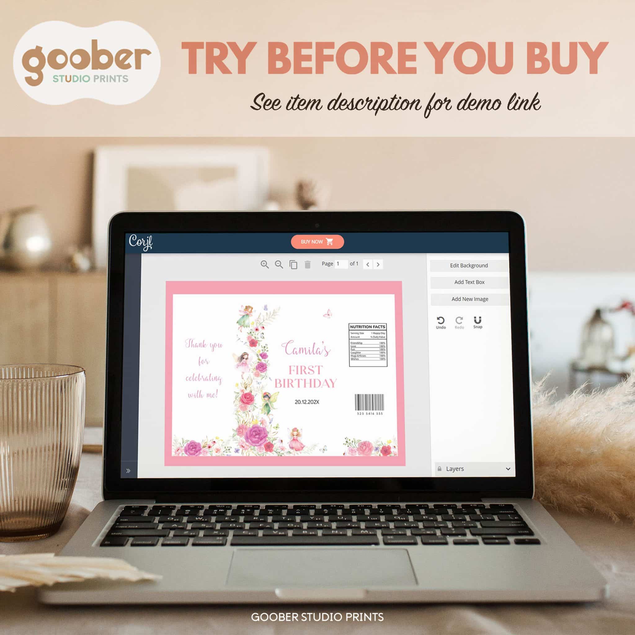 Make your snack table extra magical with our fairy birthday chip bag! Featuring whimsical fairies and delicate floral accents in soft pink, this design can be personalized with the birthday person’s name and age. Print at home on standard paper and easily assemble into snack-size bags. These printable chip bags add a charming, personal touch to your fairy-themed celebration!