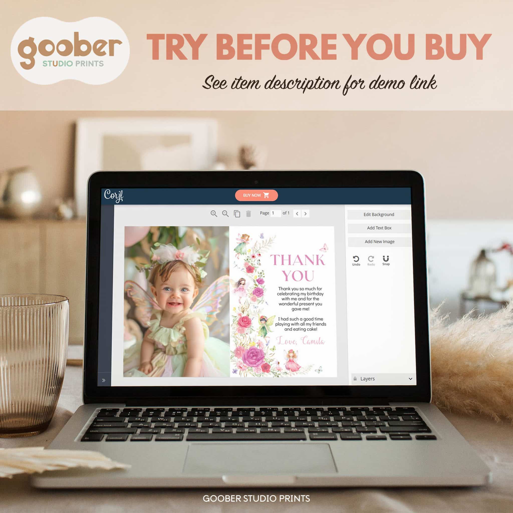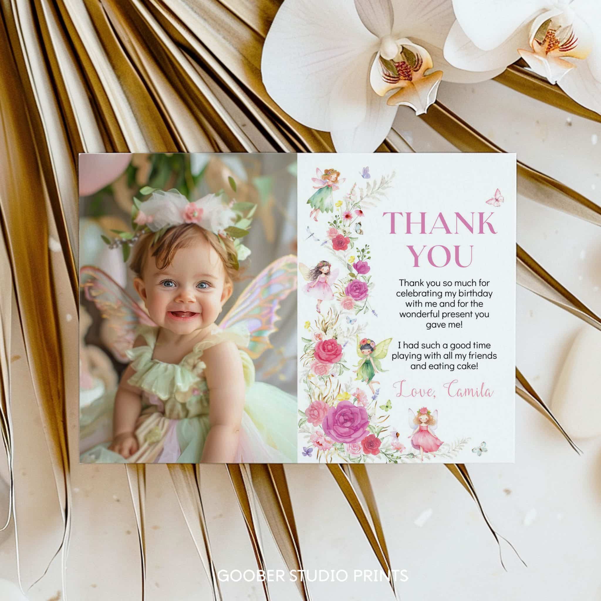 Show your gratitude with our fairy-themed birthday thank you cards! Featuring whimsical fairies and soft pink floral accents, these cards provide space for a personalized message or thank you note. Easily printable at home on standard cardstock, they’re the perfect way to thank your guests for celebrating with you and making your magical birthday party extra special.