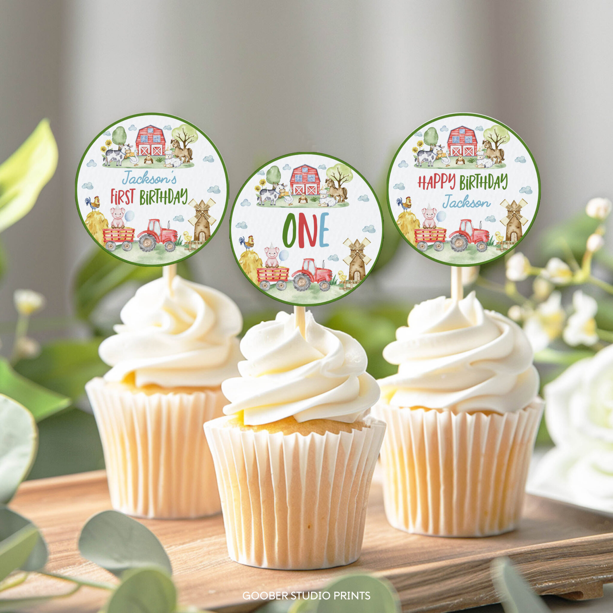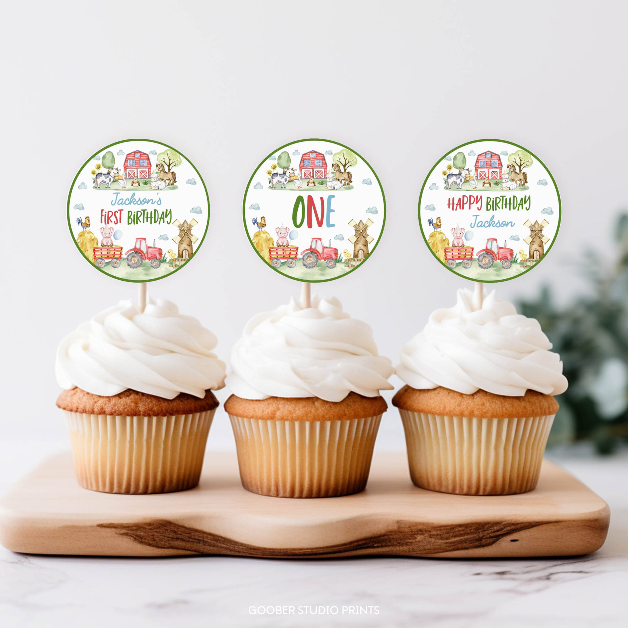 Add a fun farmyard touch to your treats with our farm animals cupcake toppers! Featuring cute barnyard animals and classic red barn accents, they’re perfect for a petting zoo party, barnyard bash, or boy birthday party. Personalize with your child’s name and age, print at home, and use on cupcakes or cake pops to match your farm-themed birthday party decorations with playful charm!