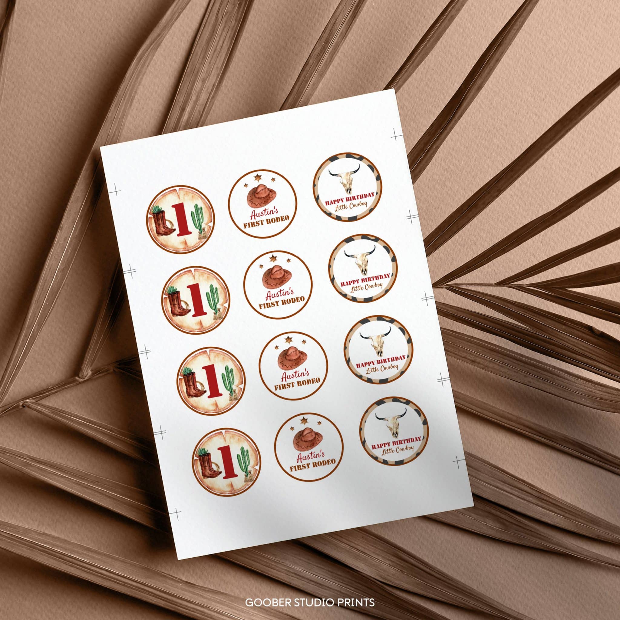 Add a charming western touch to your first rodeo birthday celebration with our cowboy-themed cupcake toppers! Featuring playful cowboy designs and rustic western details, these easy-to-print toppers are perfect for decorating cupcakes, snacks, and more. A fun and festive addition to your western theme party supplies, they help bring your first rodeo party to life with classic Wild West flair.