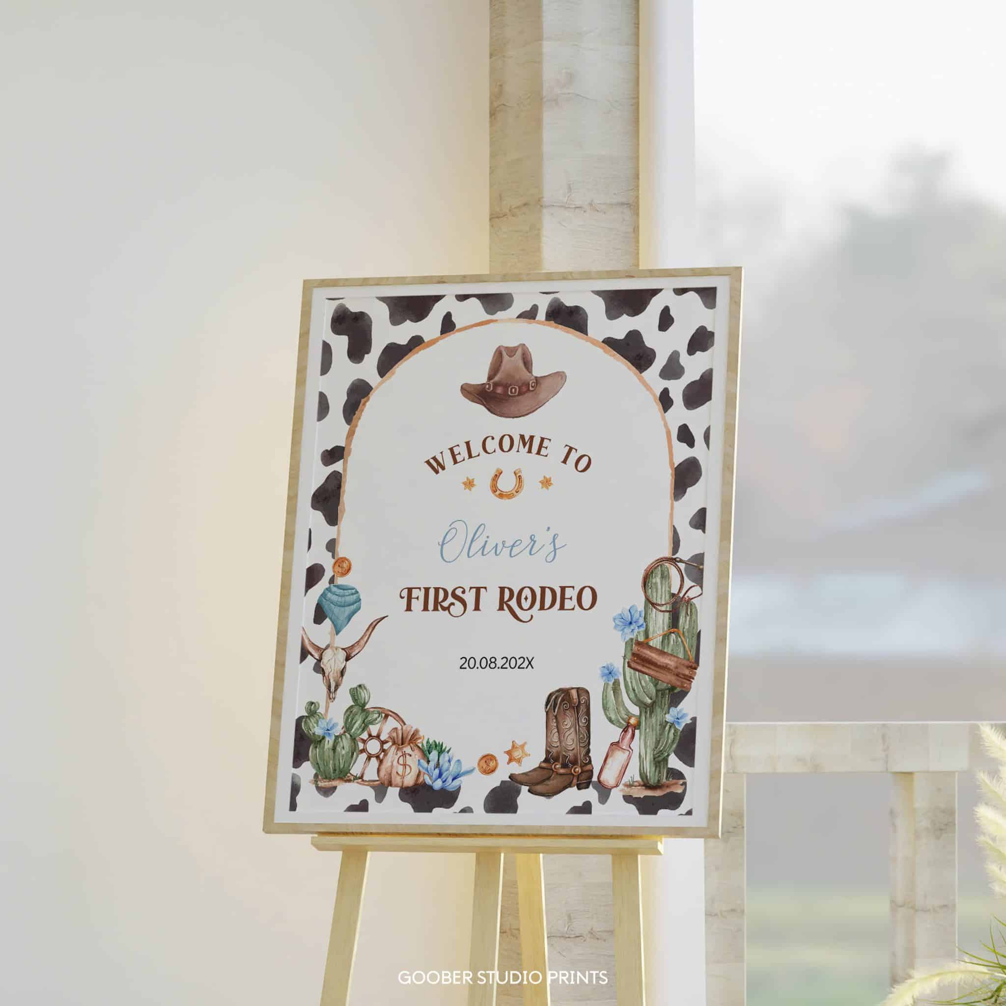 Welcome guests to your little cowboy’s first rodeo with our adorable cowboy-themed welcome sign! Featuring playful cowboy motifs and rustic accents, this sign adds a fun, western touch to your party. Personalize it with your little cowboy’s name and age to create the perfect backdrop or entrance sign for your first rodeo celebration, complete with western theme party supplies.