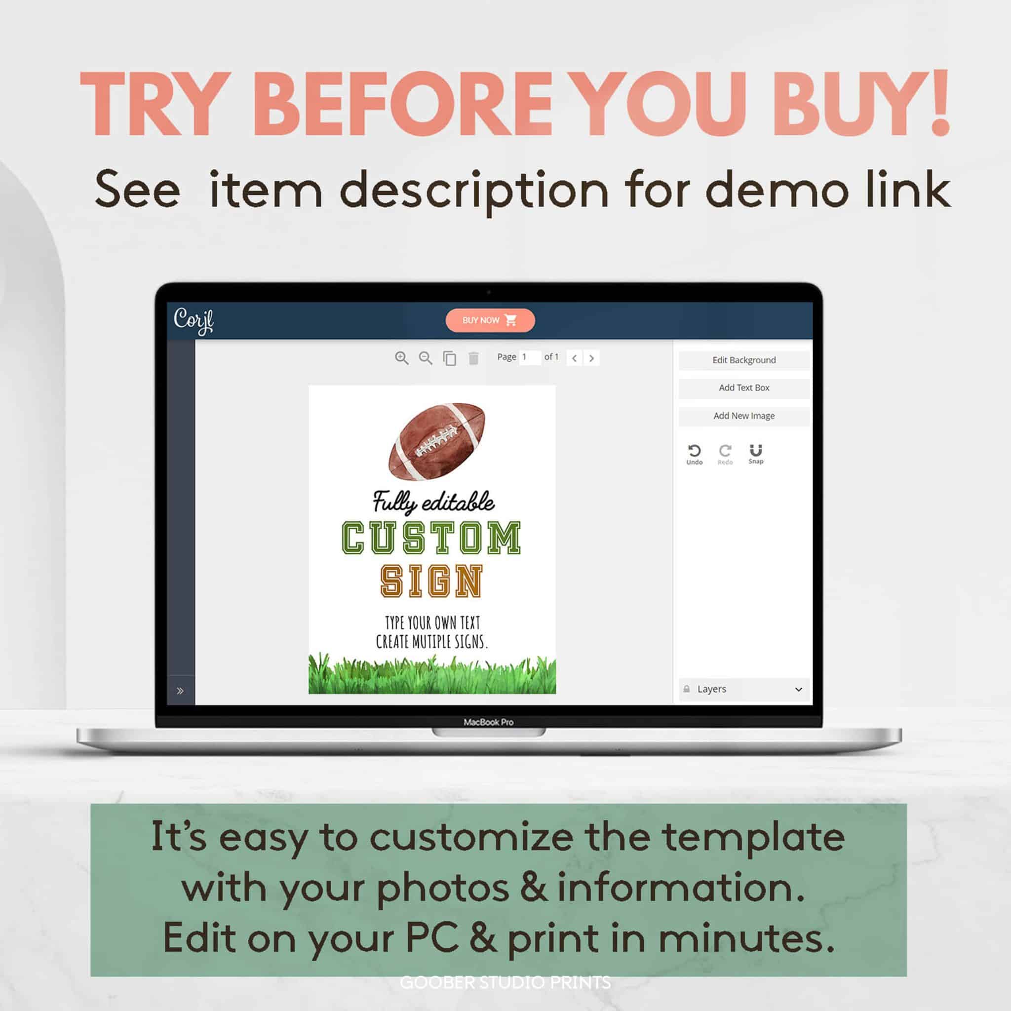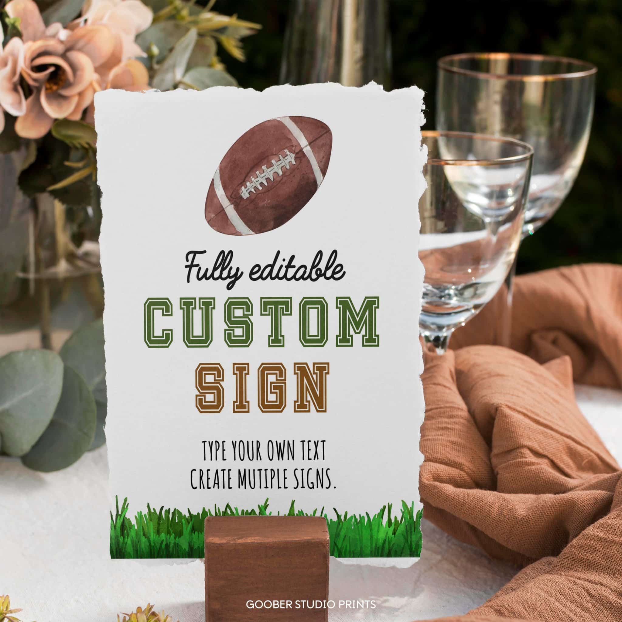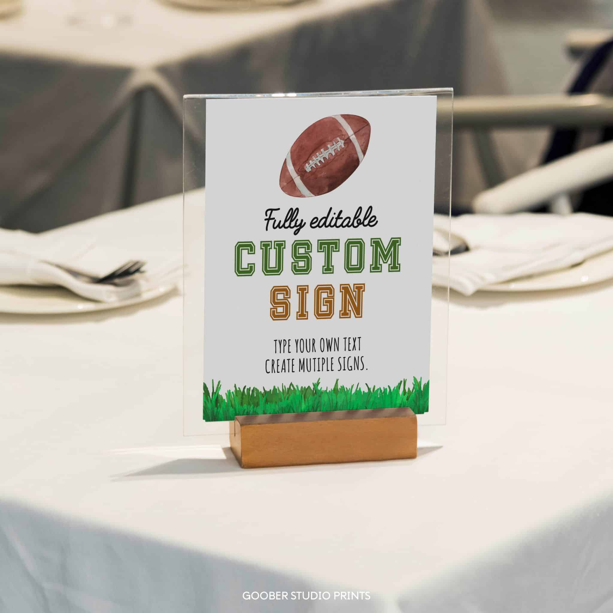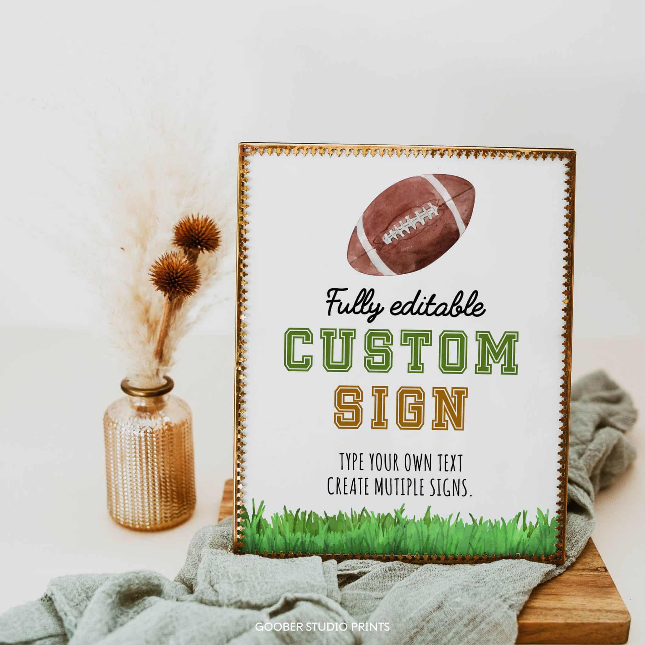 Add a personal touch to your decorations with our football birthday custom sign! Fully customizable, you can include any text, name, or age to suit your rookie’s football-themed birthday celebration. Perfect as a welcome sign, photo prop, or backdrop, this 8×10-inch design features exciting sports graphics, making your rookie’s birthday party a true touchdown!