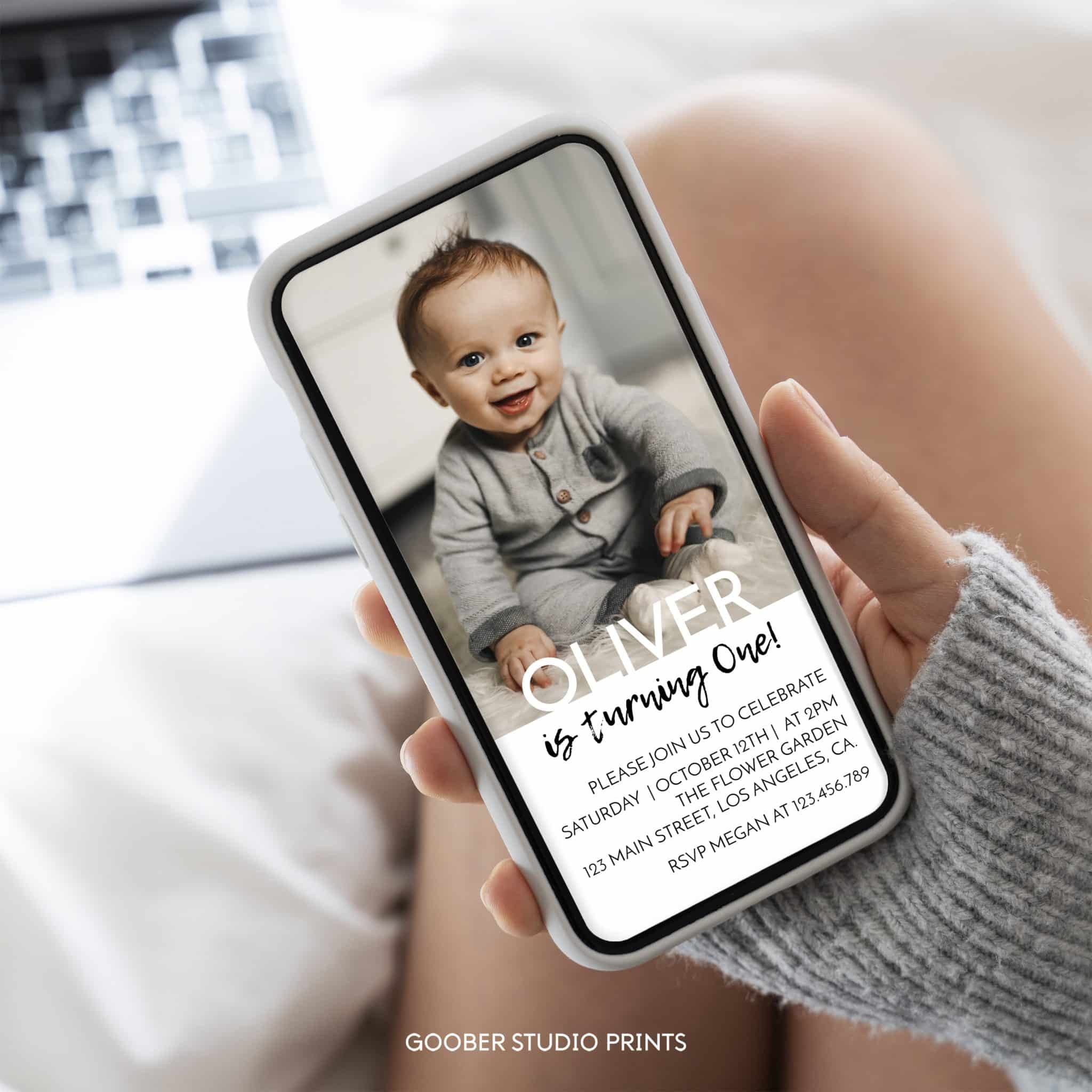 Celebrate your little one’s special day with our modern birthday photo invitation – a clean, minimalist design perfect for a stylish kids birthday. Featuring space for a photo and simple layout, this invite sets the tone for a fun and memorable celebration.