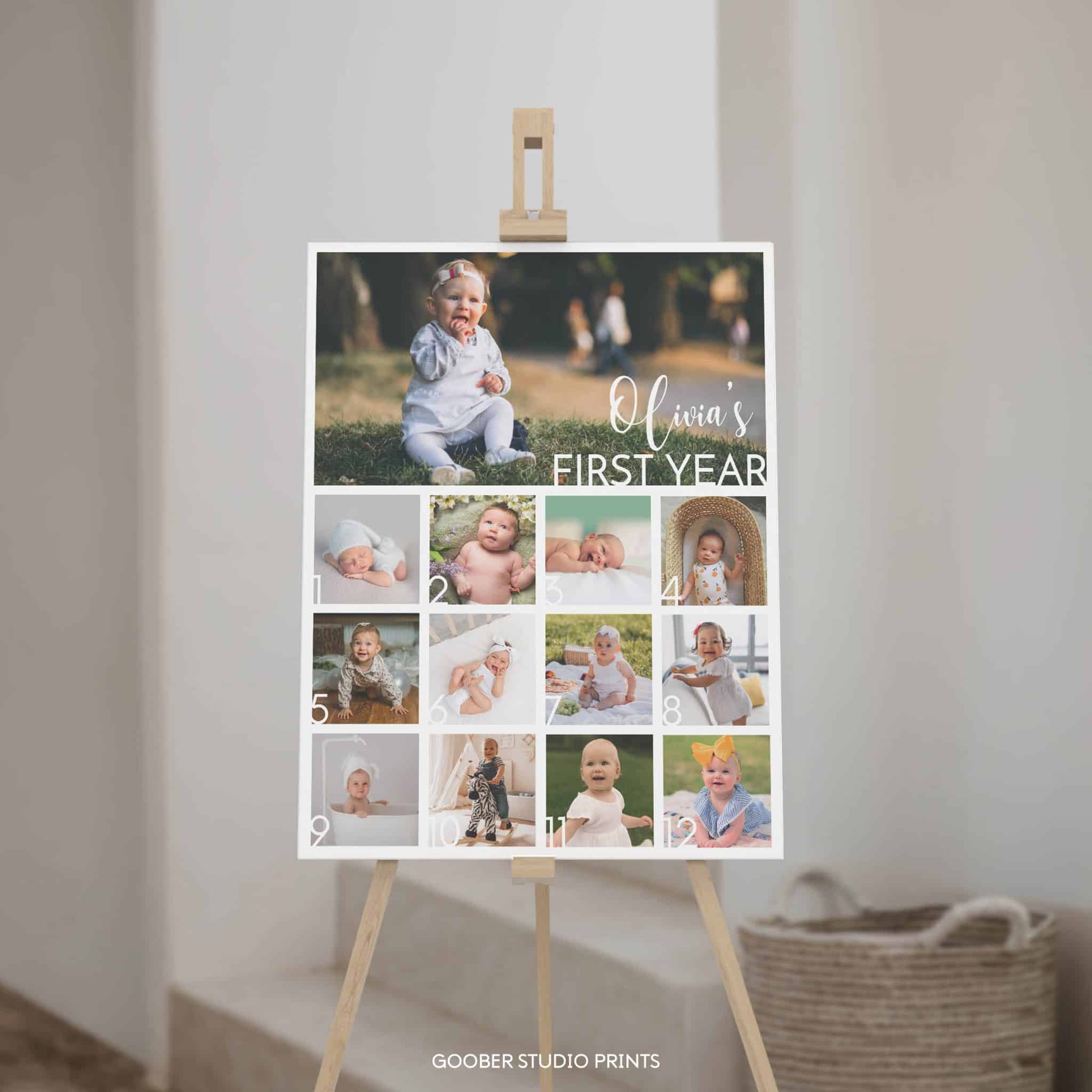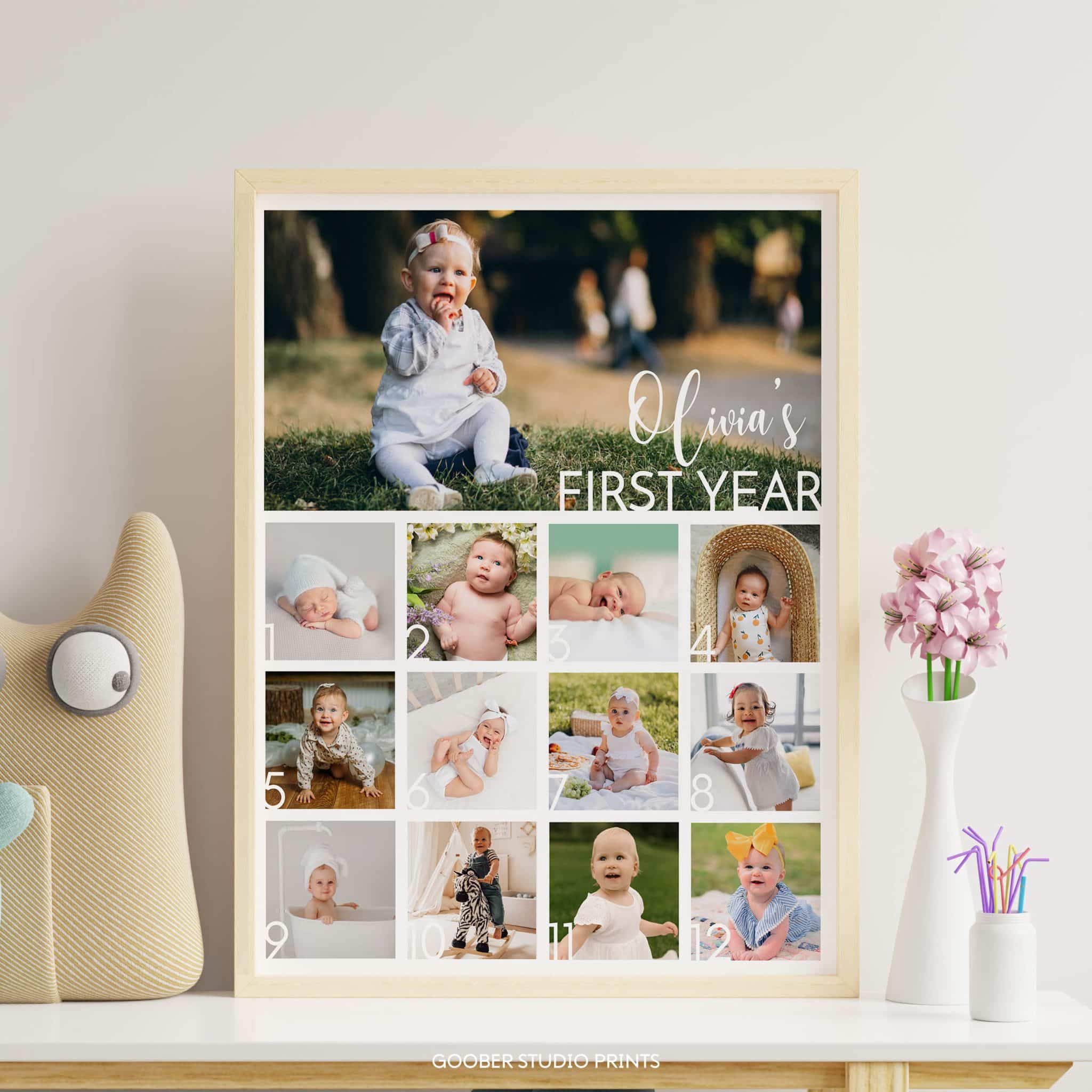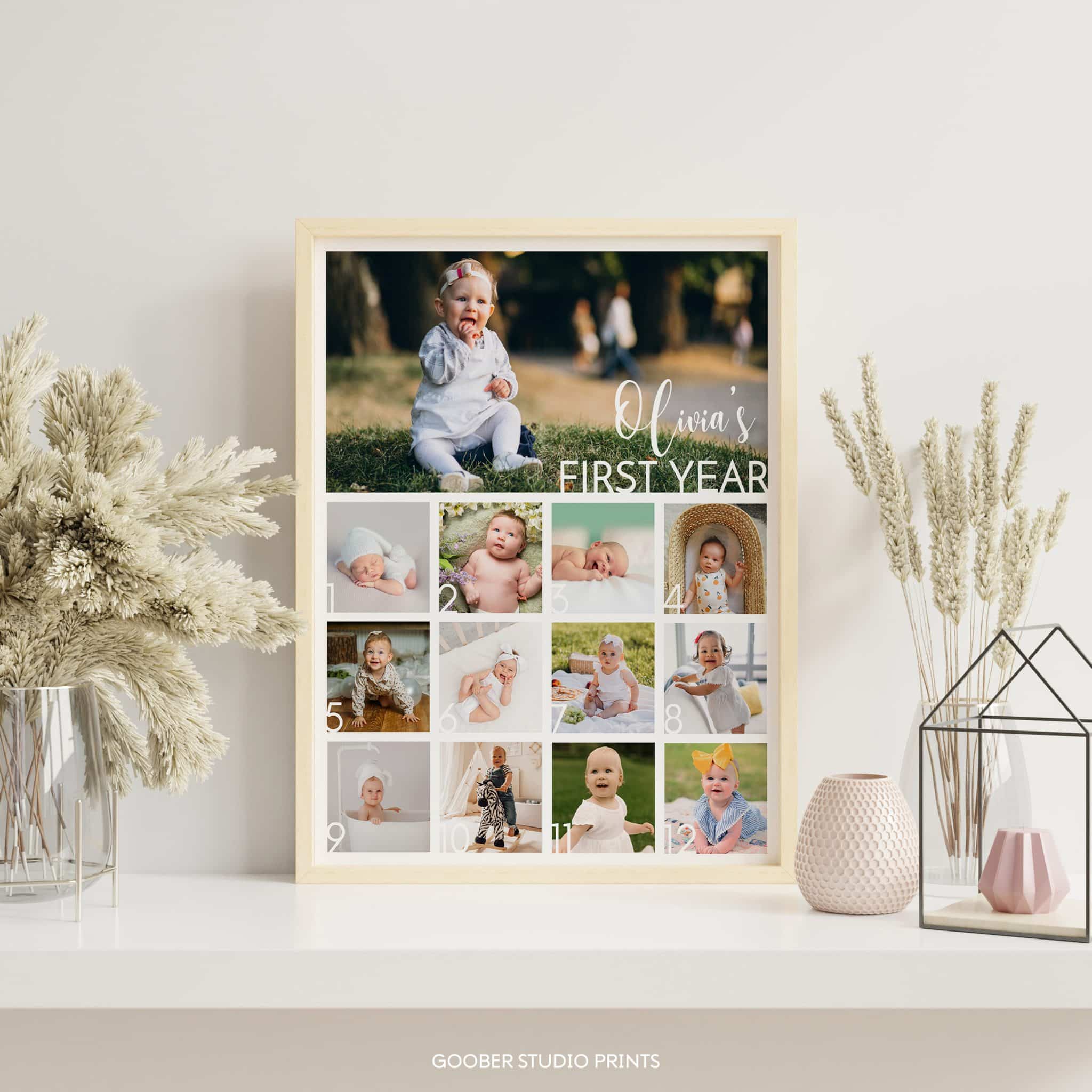 Mark your child’s milestones with our simple 13-photo collage – a modern and minimalist design perfect for a kids birthday. Featuring a clean and stylish layout, it’s the ideal way to celebrate their first year in a memorable, modern birthday style.