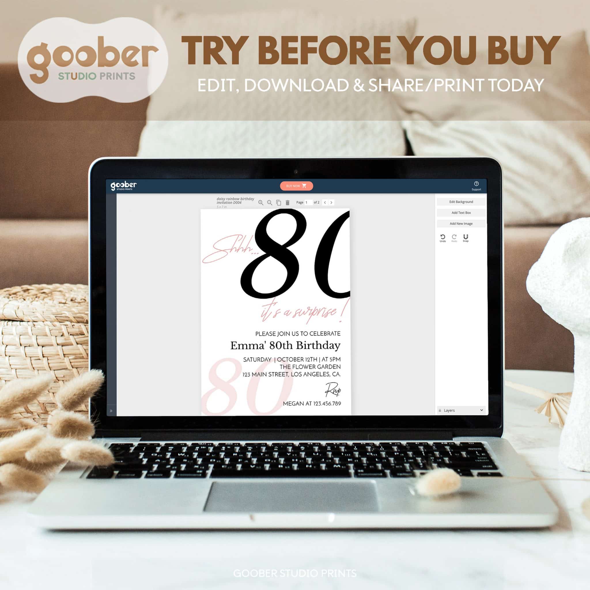 Celebrate in style with our modern minimalist birthday invitation – perfect for an adult birthday or elegant 80th birthday gathering. Featuring a clean, sophisticated design, this invite sets the tone for a timeless celebration. Easily personalize with your party details for a memorable modern birthday event.