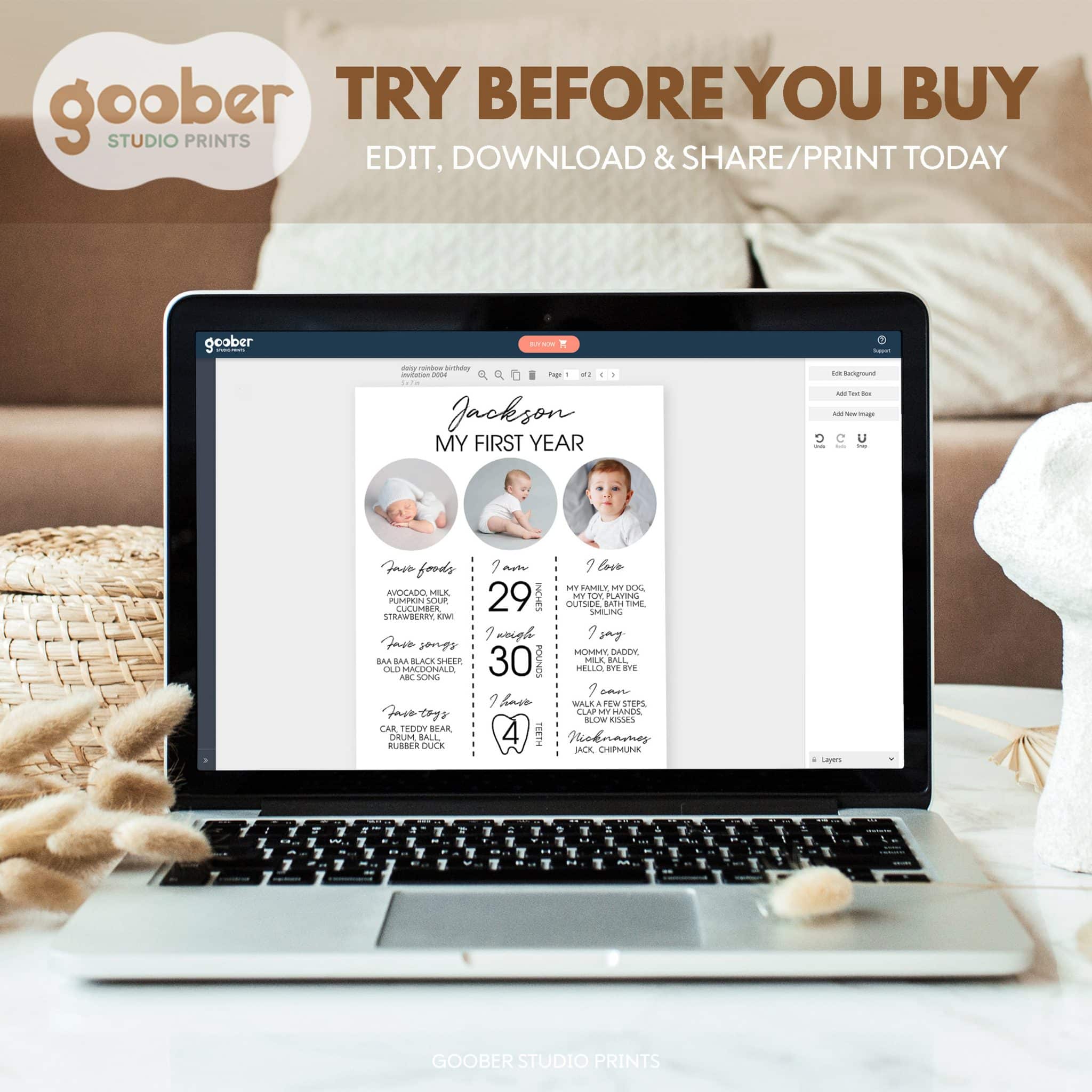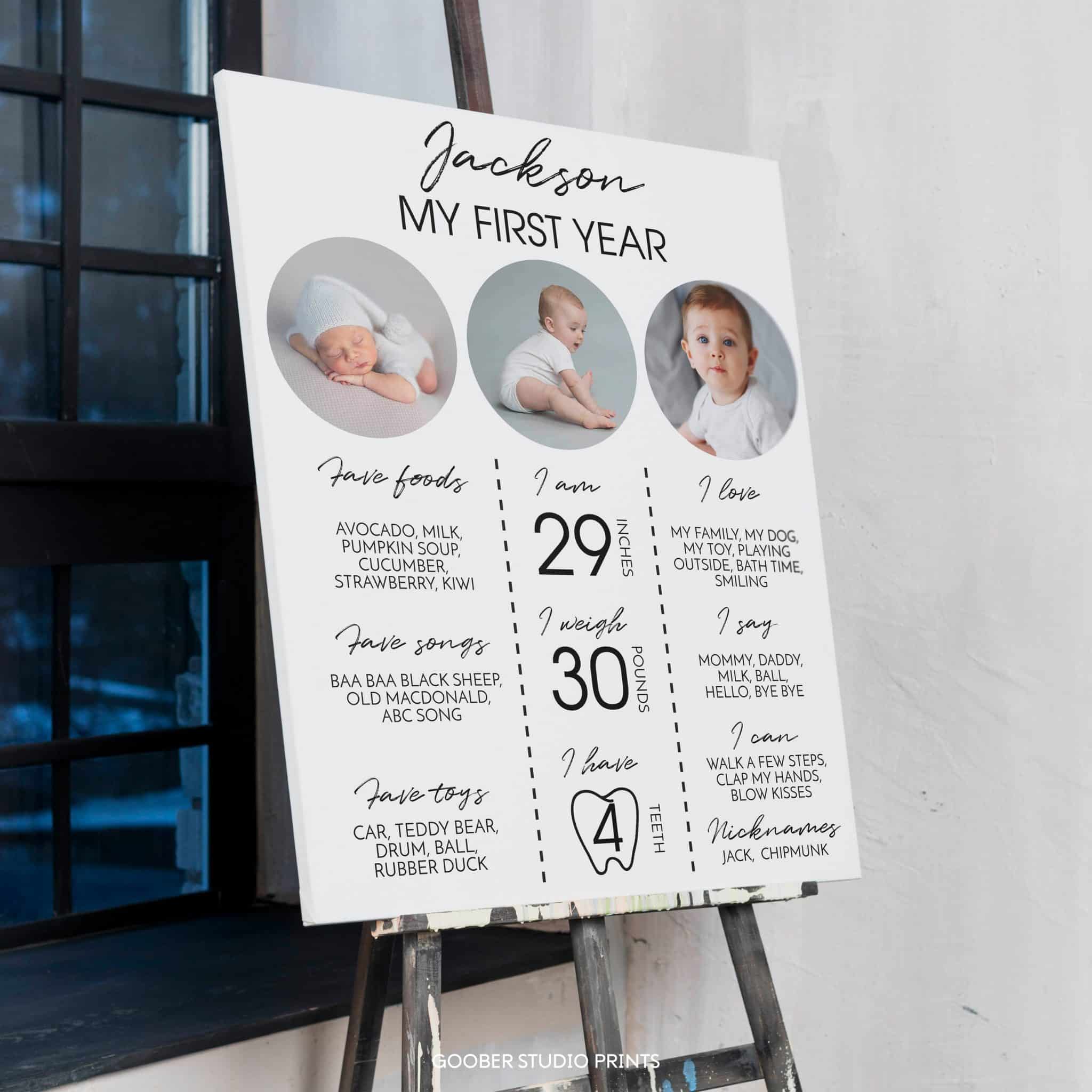 Make memories in style with our minimalist black and white milestone photo poster – designed for a modern birthday and perfect for a kids birthday. With its clean layout and simple details, it’s a timeless way to celebrate your child’s milestones and special moments.