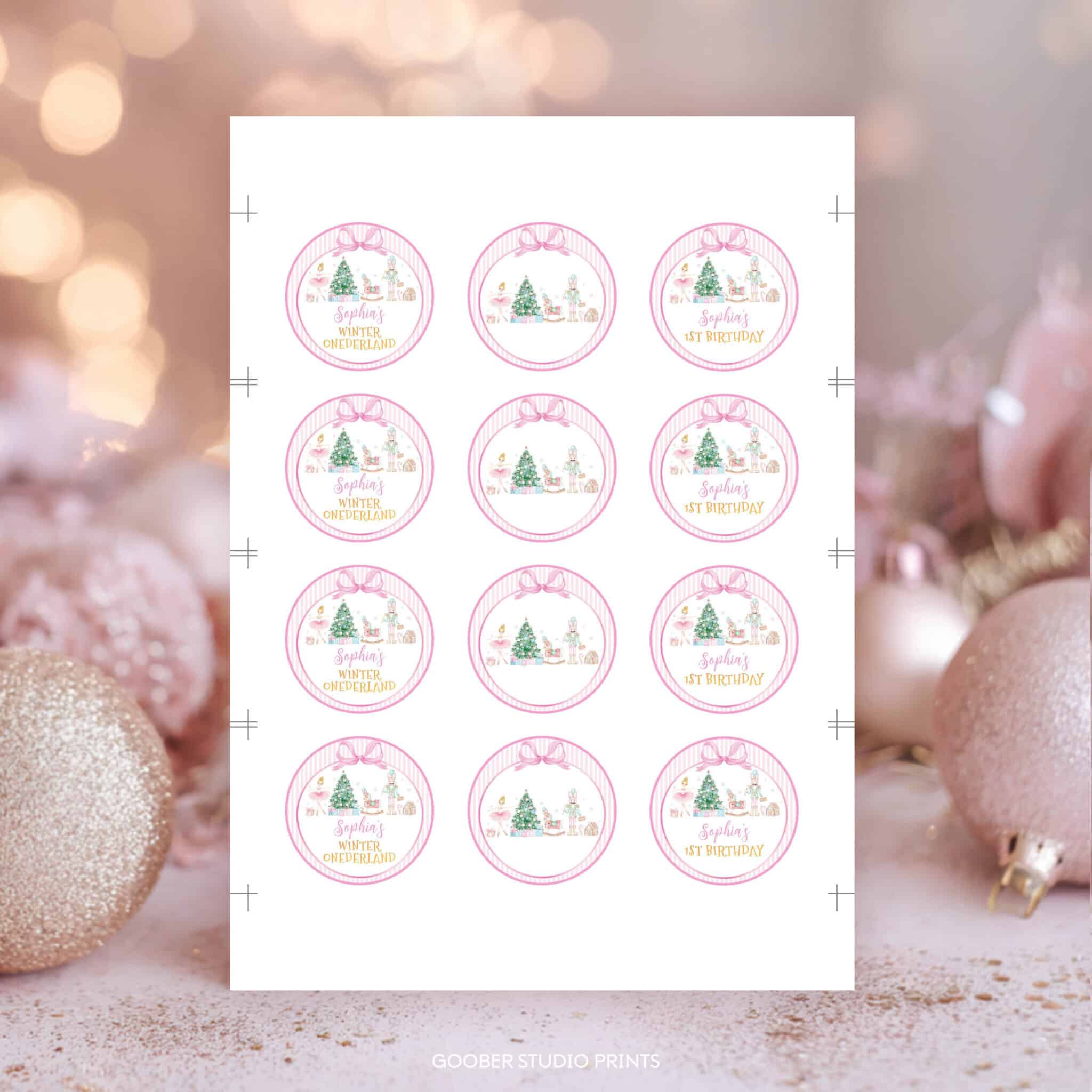 Sweeten your celebration with our nutcracker birthday cupcake toppers, perfect for a winter onederland theme. Featuring whimsical nutcrackers, delicate snowflakes, soft pink bow accents, and a sweet little sugar plum touch, these toppers can be personalized with your child’s name and age. Easy to print at home, they’re a fun, budget-friendly way to decorate cupcakes, cake pops, muffins, and more for a magical winter birthday or christmas party.