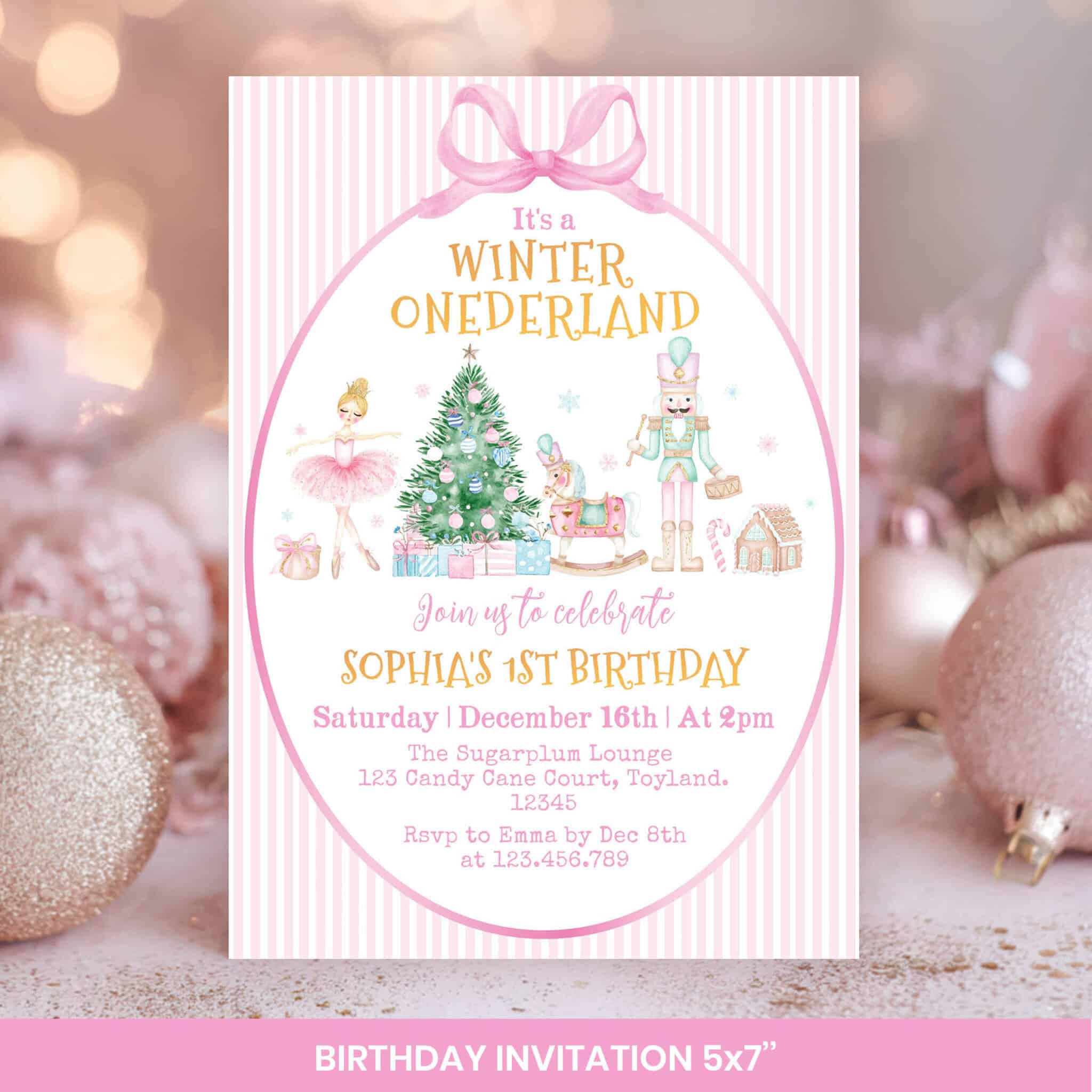 An access link to your editable nutcracker winter birthday bundle set will be sent to your e-mail address. The link allows you to edit, save and download your designs as JPG or PDF files. All the included designs and their sizes are: