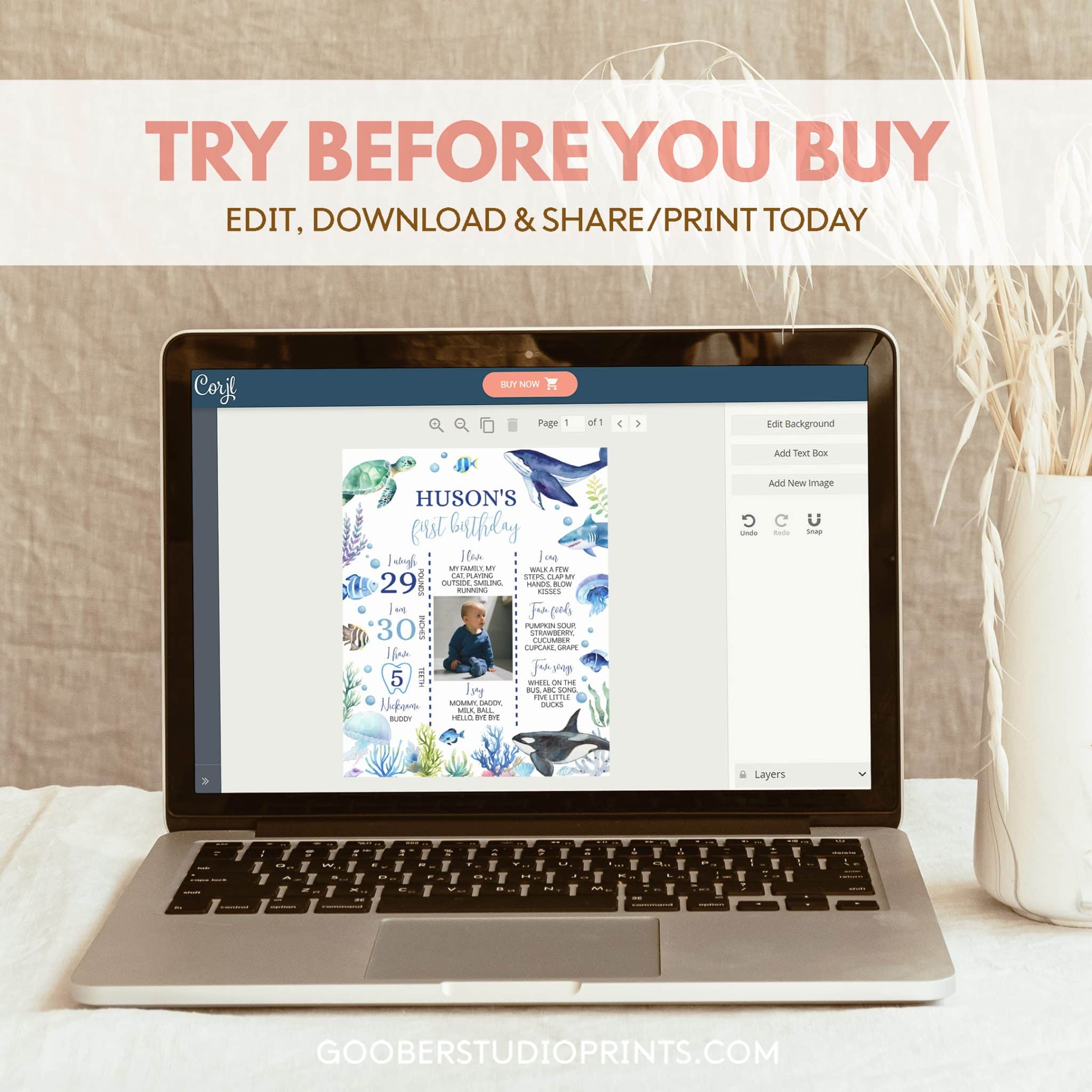 Our Ocean printable birthday milestone photo poster is the perfect way to celebrate and document a special birthday. The design features a unique and memorable Colorful Ocean Animals theme with space for your child’s name, special milestones, achievements, and memories from their life so far. This poster can be easily printed at home on standard poster paper. It’s a great way to celebrate a milestone birthday and to create a lasting memento of the special occasion.