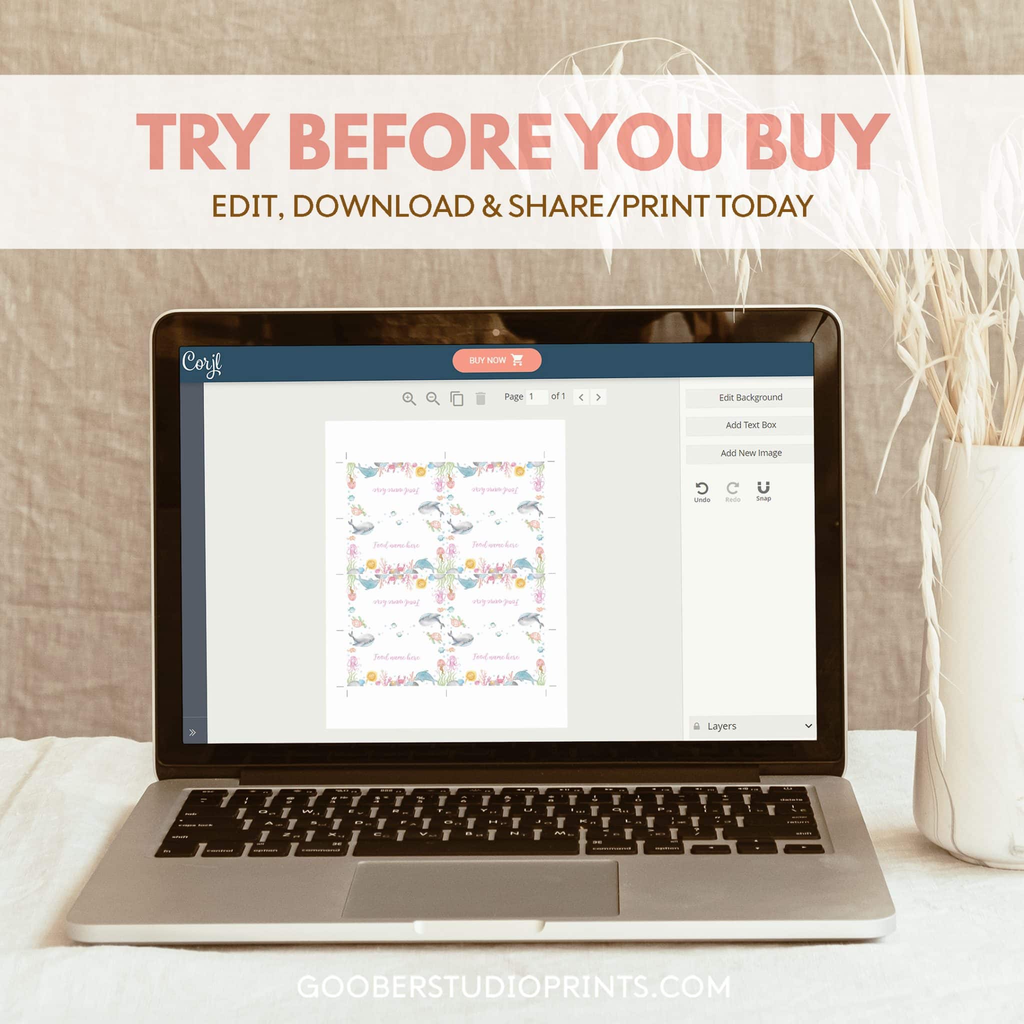 - Once you are finished personalizing your template you can save it and then download it to print. You can print it at home, a local print shop, or have it delivered from an online printer. Your editing access is available for 180 days after the purchase date.