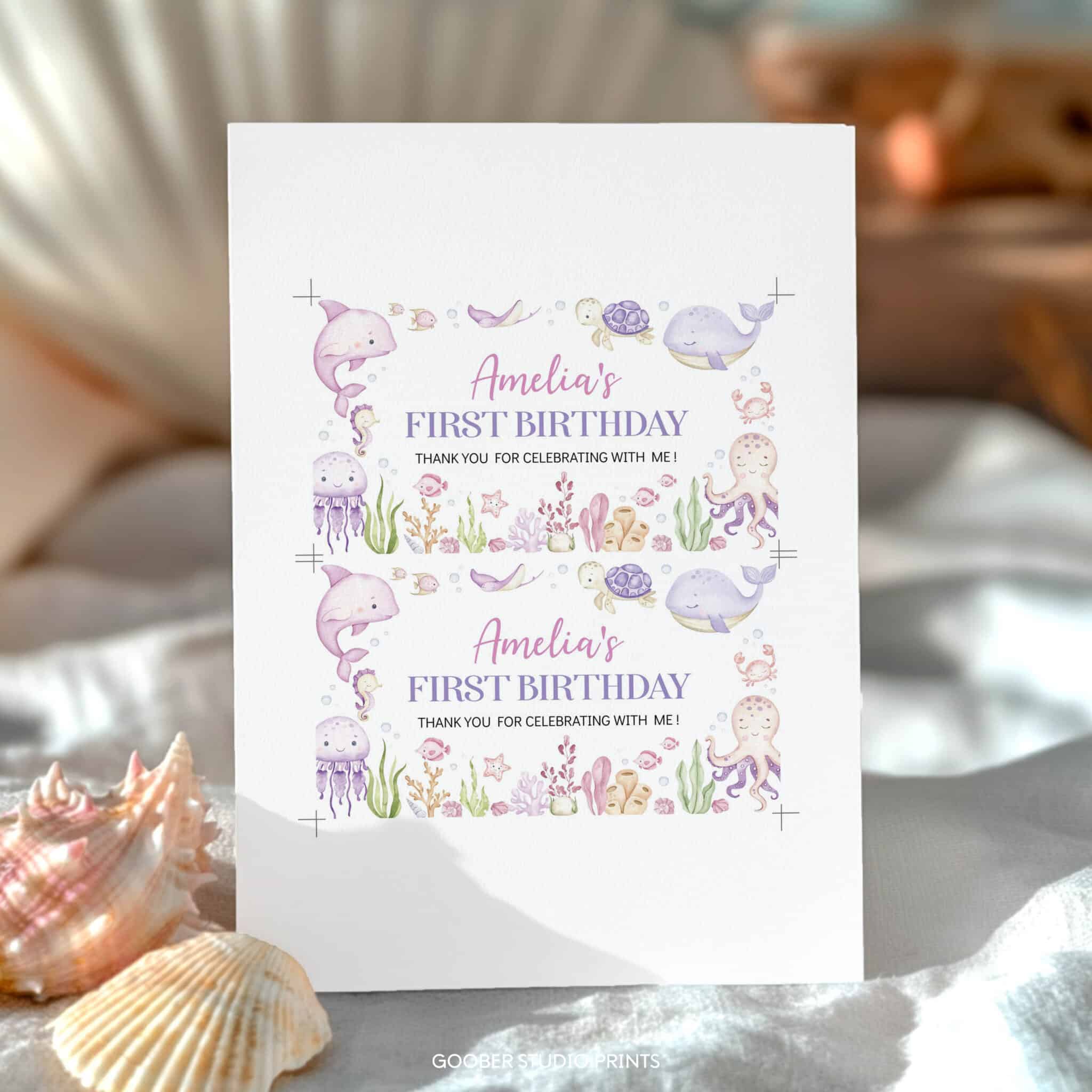 Add a whimsical touch to your girl’s birthday with our pastel under the sea gable box labels. Featuring adorable ocean animals in soft watercolor tones, these printables are perfect for an ocean themed birthday party. Personalize with your child’s name and age, then print and attach to your favor boxes for a sweet under the sea detail that guests will love. A simple and stylish way to complete your girl birthday celebration.