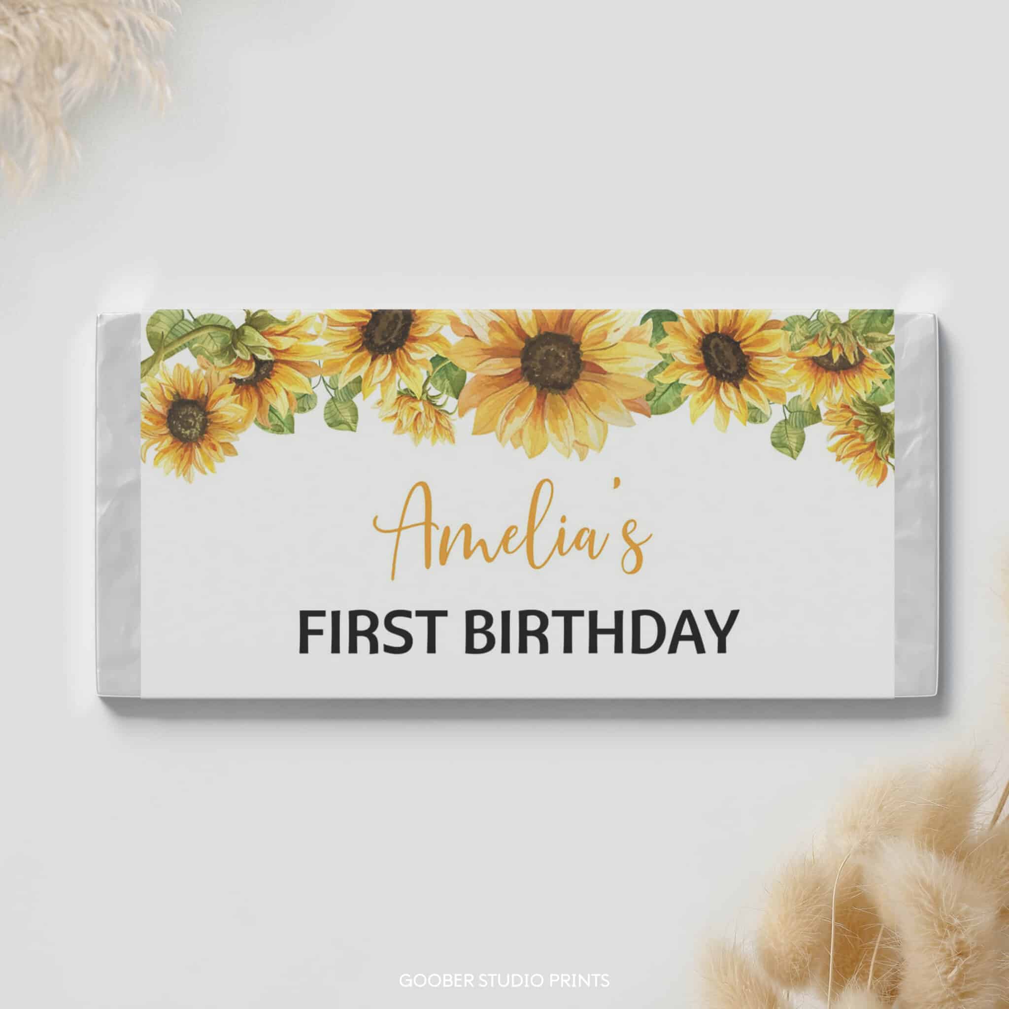 Add a cheerful touch to your party favors with our sunflower birthday printable chocolate bar wrappers, perfect for a sweet sunflower birthday girl celebration. Designed with bright sunflowers, soft floral accents, and warm golden tones, these wrappers bring a sunny, joyful look to your sunflower birthday theme. Easy to print at home, they create charming and budget-friendly treats that guests will love at your girl’s sunflower birthday party.