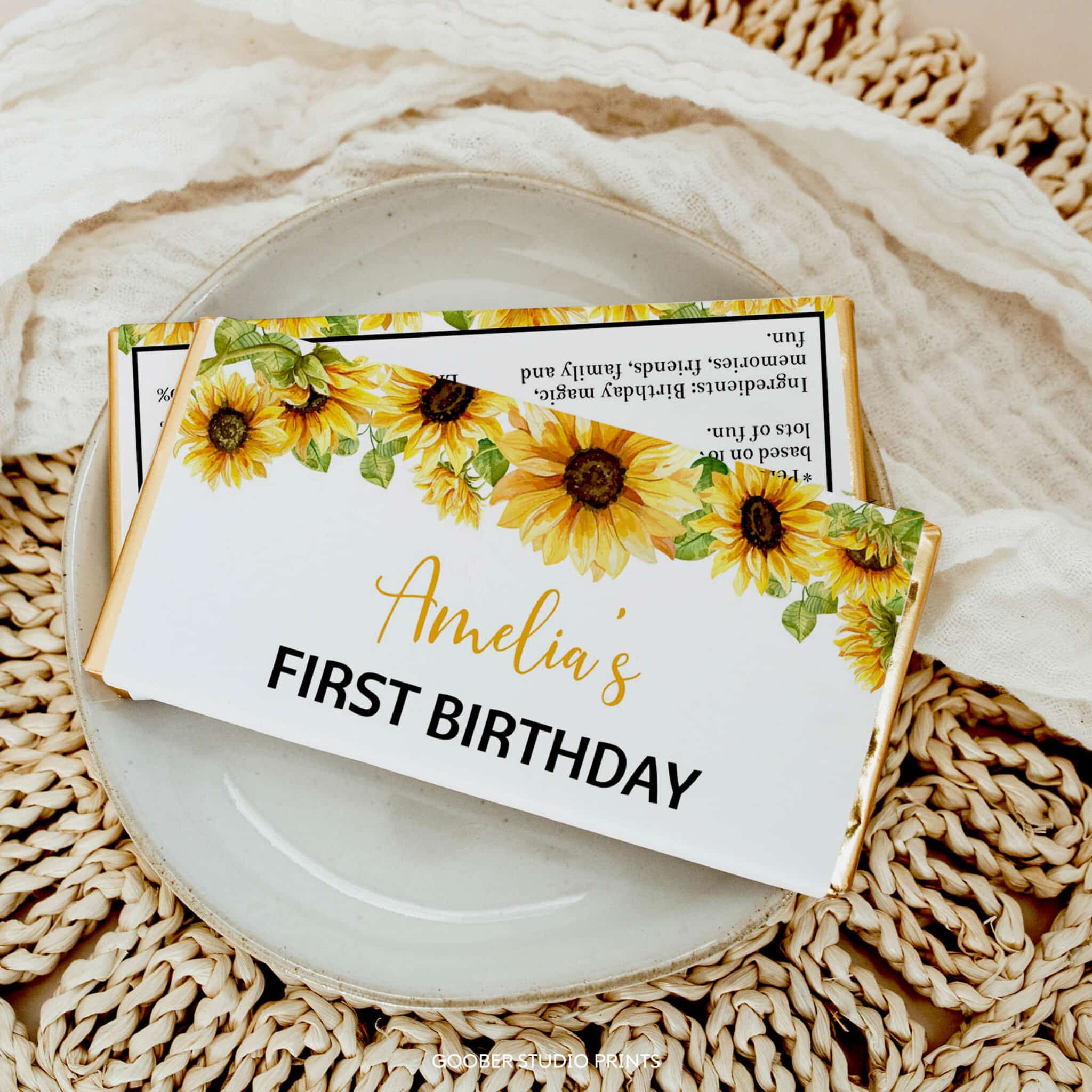 Sunflower Birthday Party Chocolate Bar Wrappers