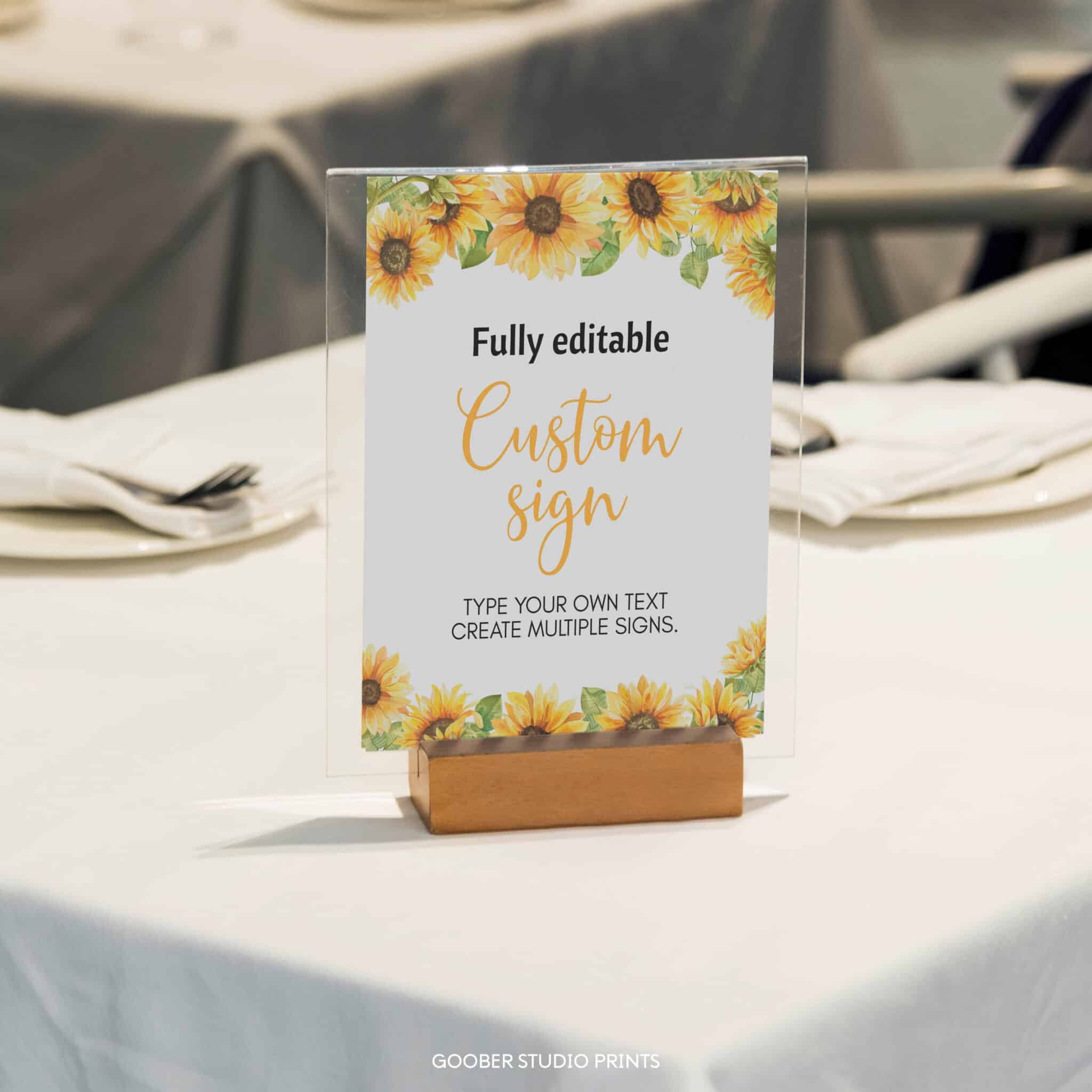 Brighten up your little girl’s celebration with our custom sunflower birthday sign. This 8×10-inch printable design features cheerful sunflowers, soft floral details, and warm golden accents—perfect for a sweet sunflower birthday girl party. Fully customizable with your choice of text, name, and age, it works beautifully as a welcome sign, photo prop, or party backdrop. A charming way to complement your sunflower birthday decorations, this sign adds a bright and joyful touch to your girl’s special day.