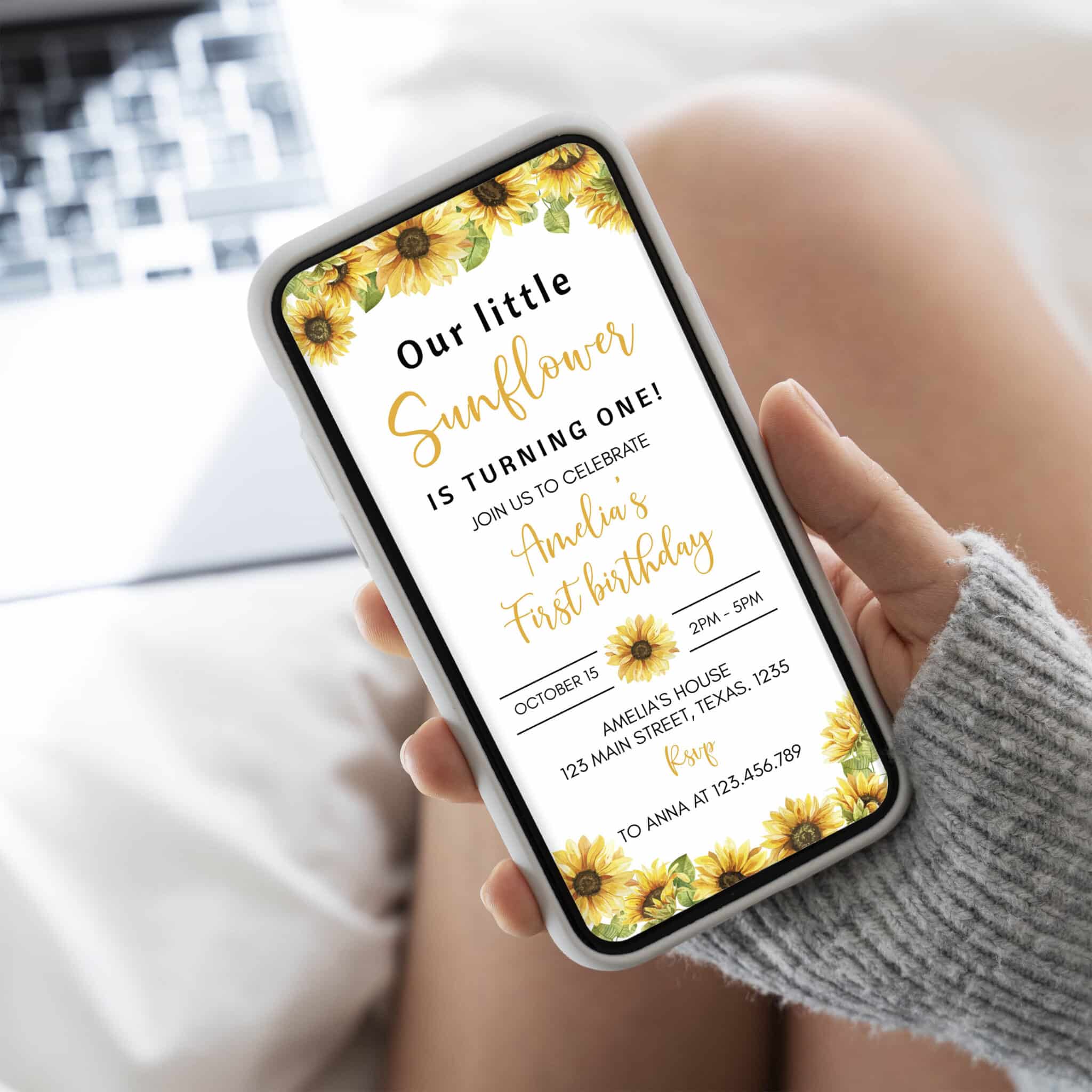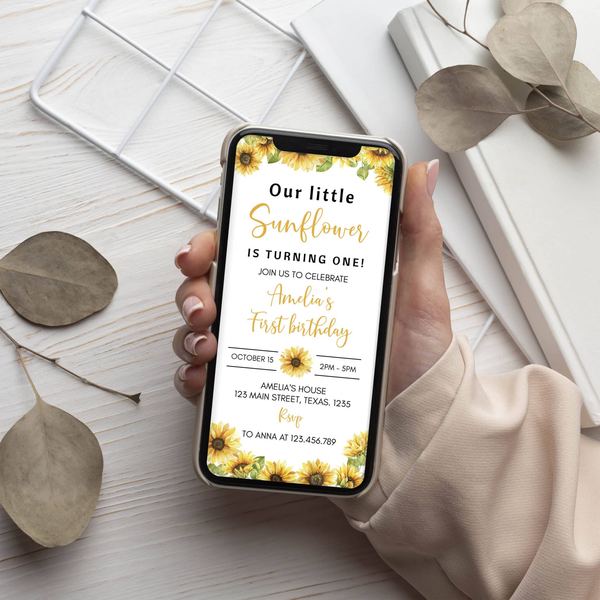 Make your little one’s special day shine with our sunflower birthday evite, perfect for a sunflower birthday girl celebration. This bright digital invitation features cheerful sunflowers, soft floral accents, and warm golden tones that bring a sunny, happy feeling to your child’s party. Designed to complement your sunflower birthday décor, it sets the stage for a joyful, love-filled celebration. Fully editable and easy to share, this evite makes planning your girl’s sunflower birthday simple, beautiful, and unforgettable.
