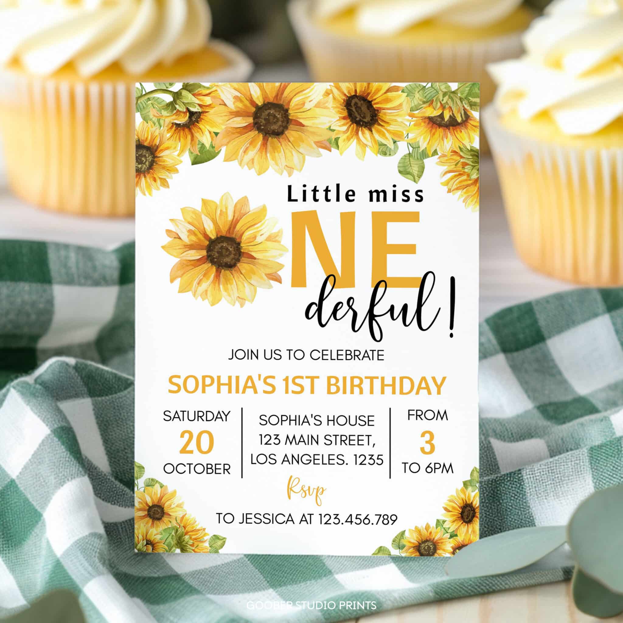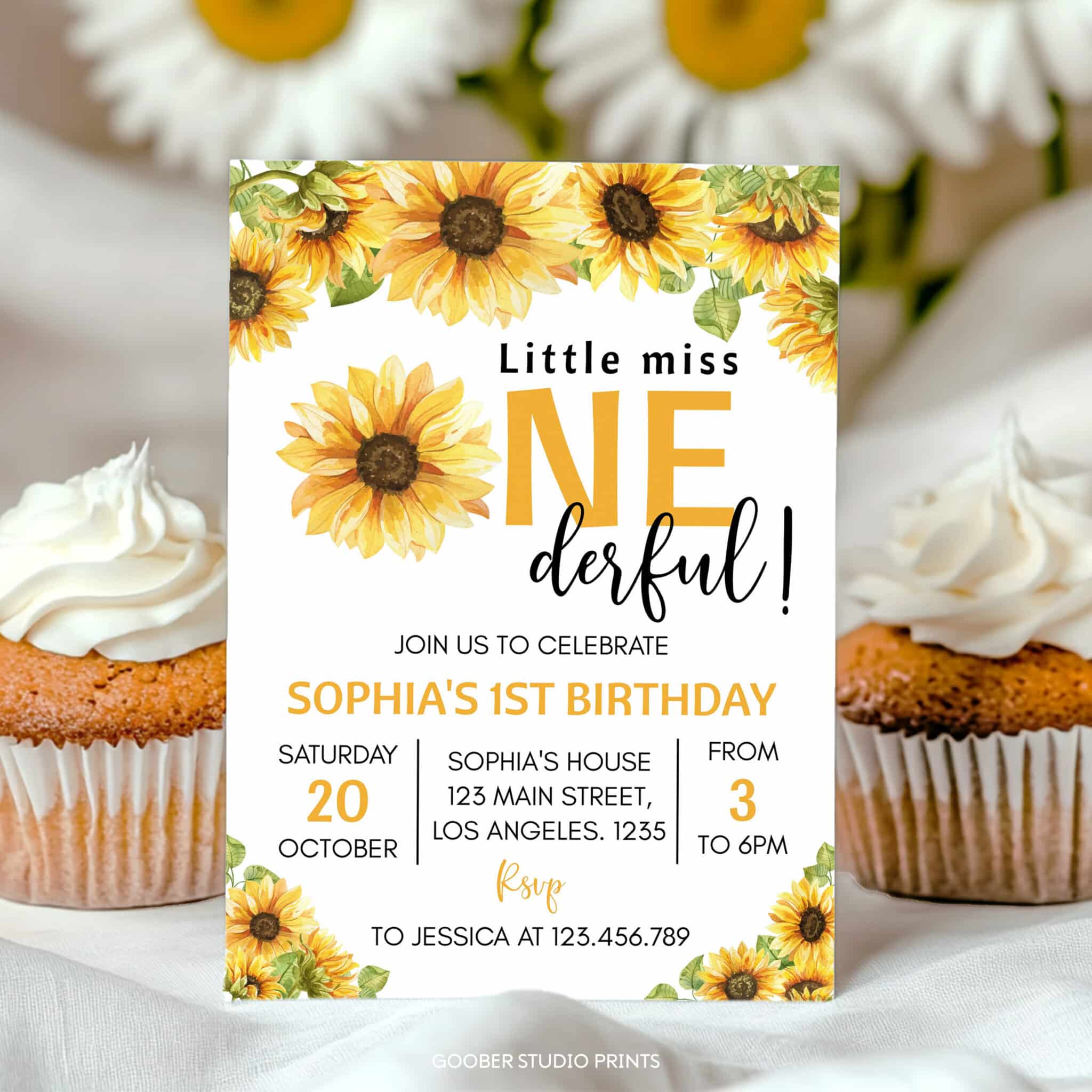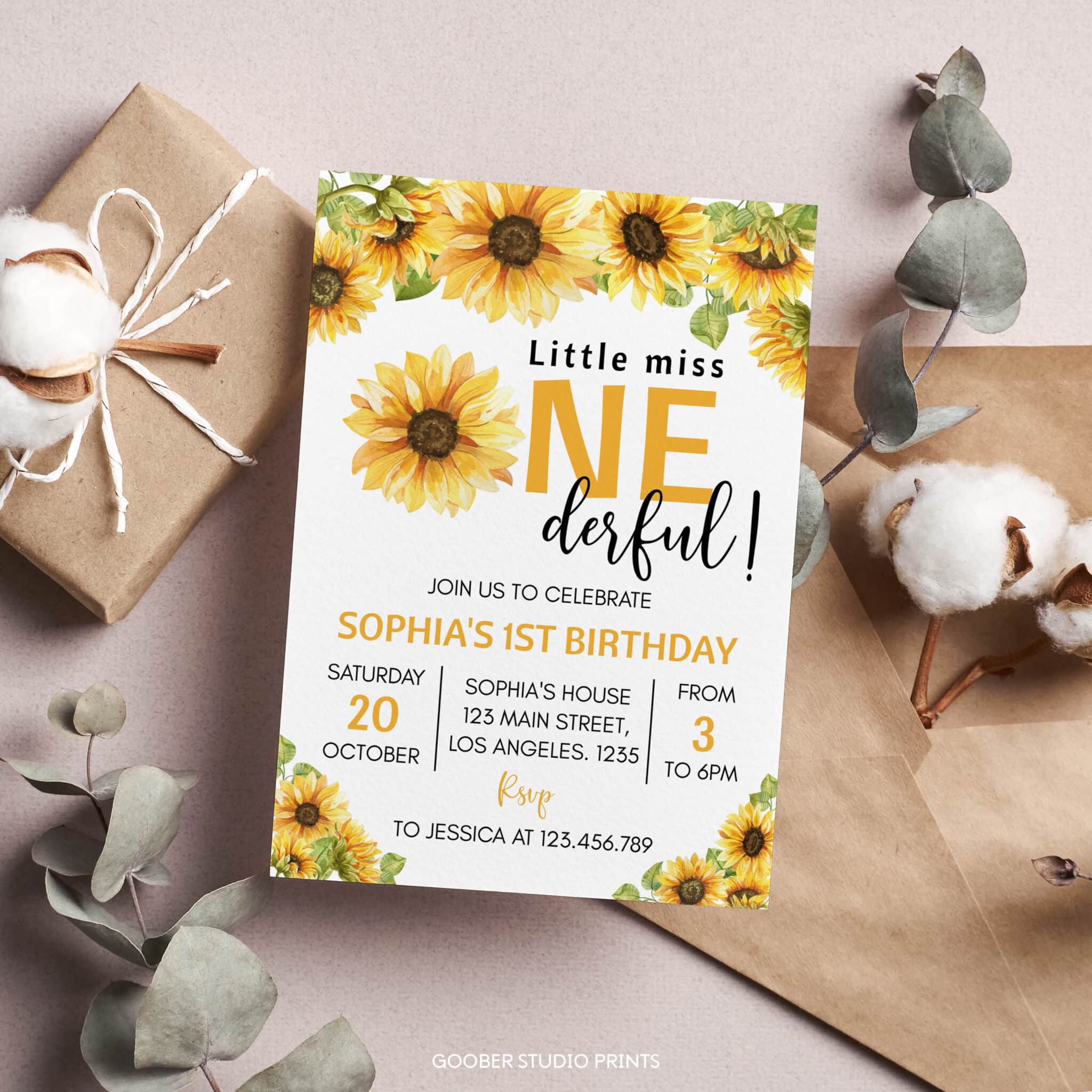 Welcome your guests to a bright and joyful celebration with our sunflower onederful birthday invitation, perfect for a sweet sunflower birthday girl party. Designed for an onederful theme, this charming invitation features sunny sunflowers, soft floral details, and warm golden tones that create a happy, light-filled look. With plenty of space to customize your party details, it’s easy to personalize and print at home—making it a simple and budget-friendly way to introduce your little girl’s unforgettable sunflower onederful first birthday.