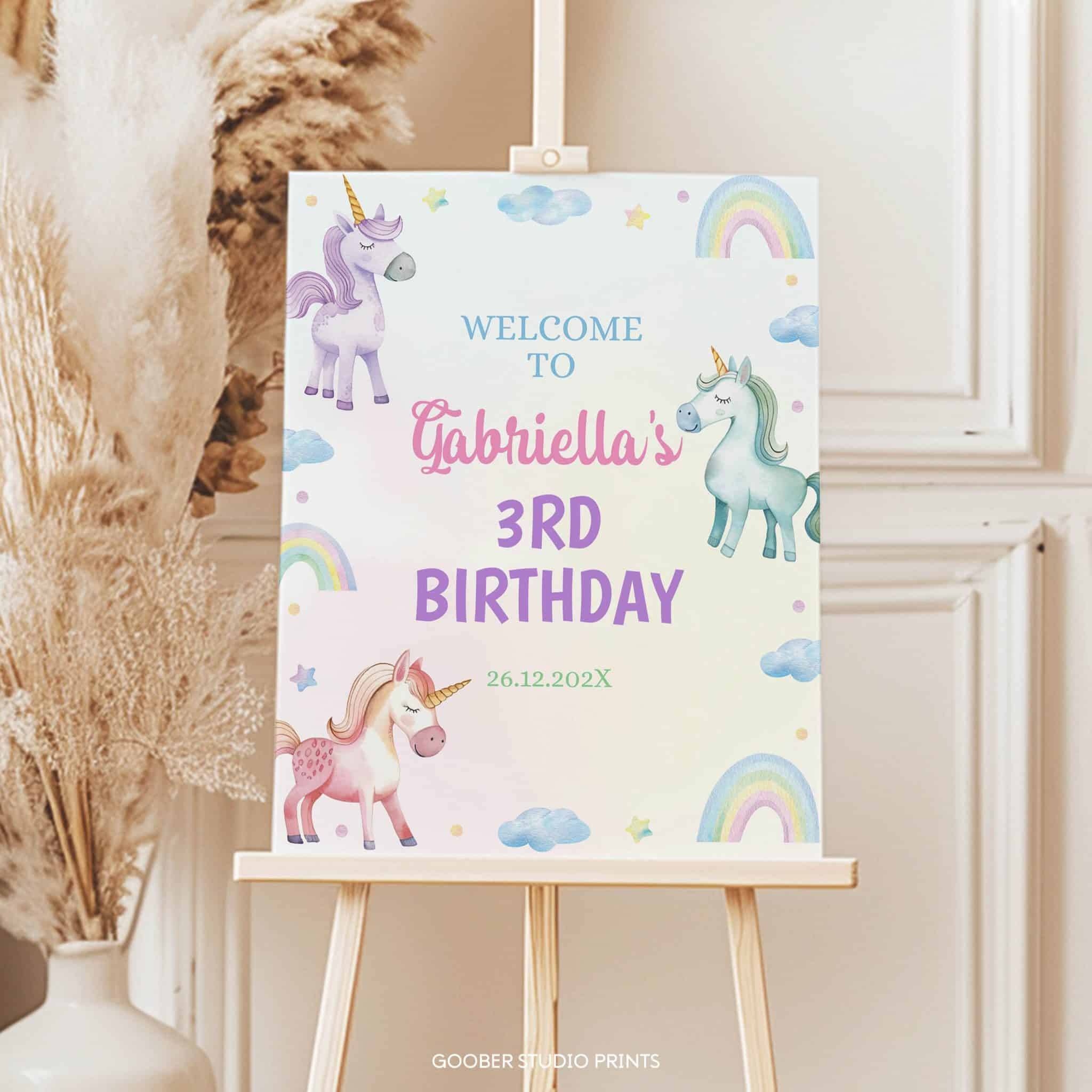 Unicorn Birthday Party Welcome Sign