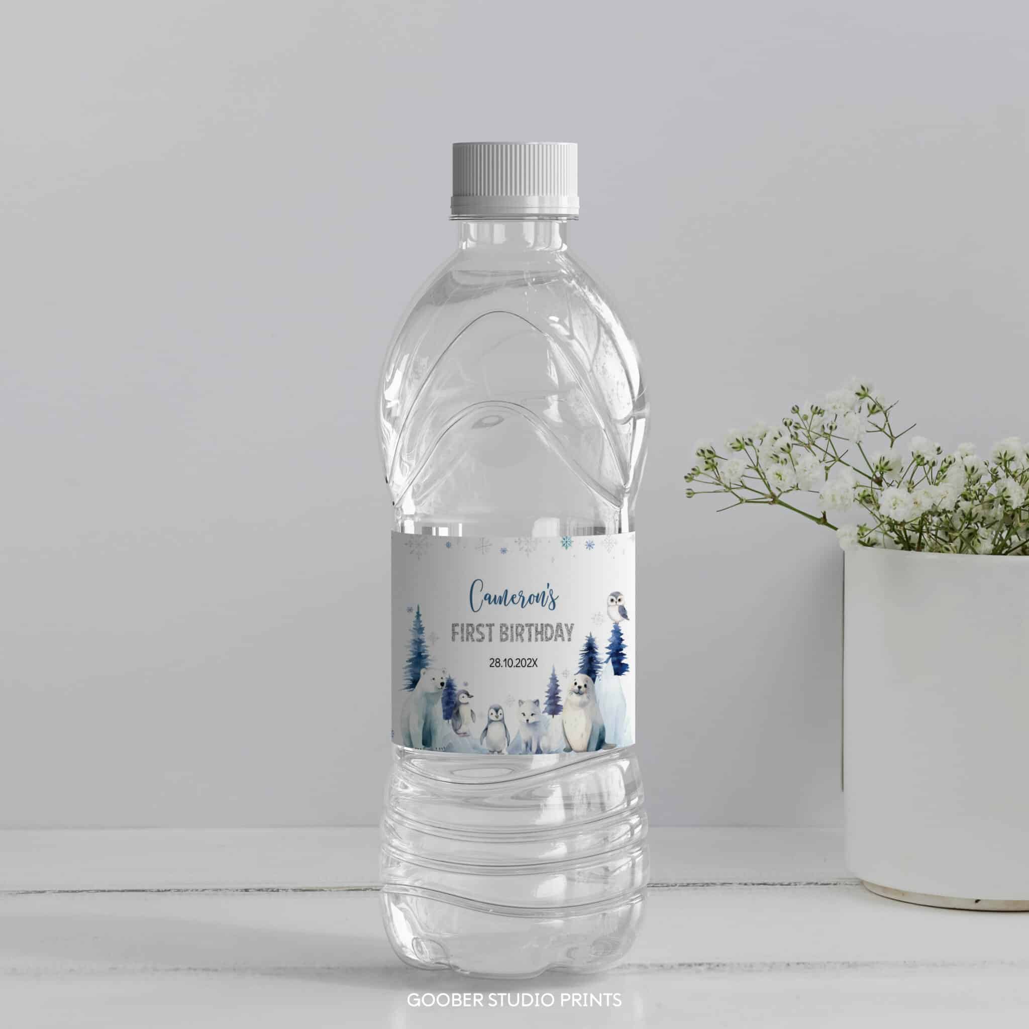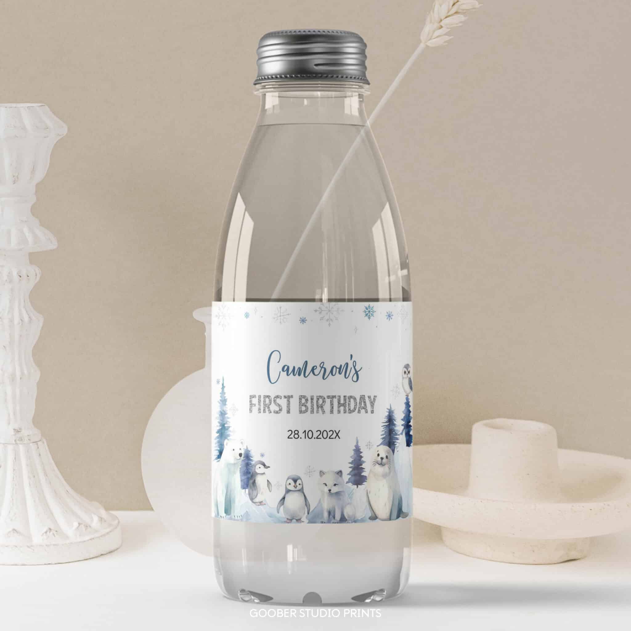 Add a festive touch to your party drinks with our winter birthday water bottle labels! Featuring cute arctic animals, shimmering snowflakes, and frosty woodland accents in a soft watercolor style, these labels can be personalized with your child’s name and age. Designed to fit standard 8.5”x2” bottles, they’re easy to print at home and make a whimsical, budget-friendly addition to your winter onederland decorations—perfect for celebrating your little one’s winter birthday in style.