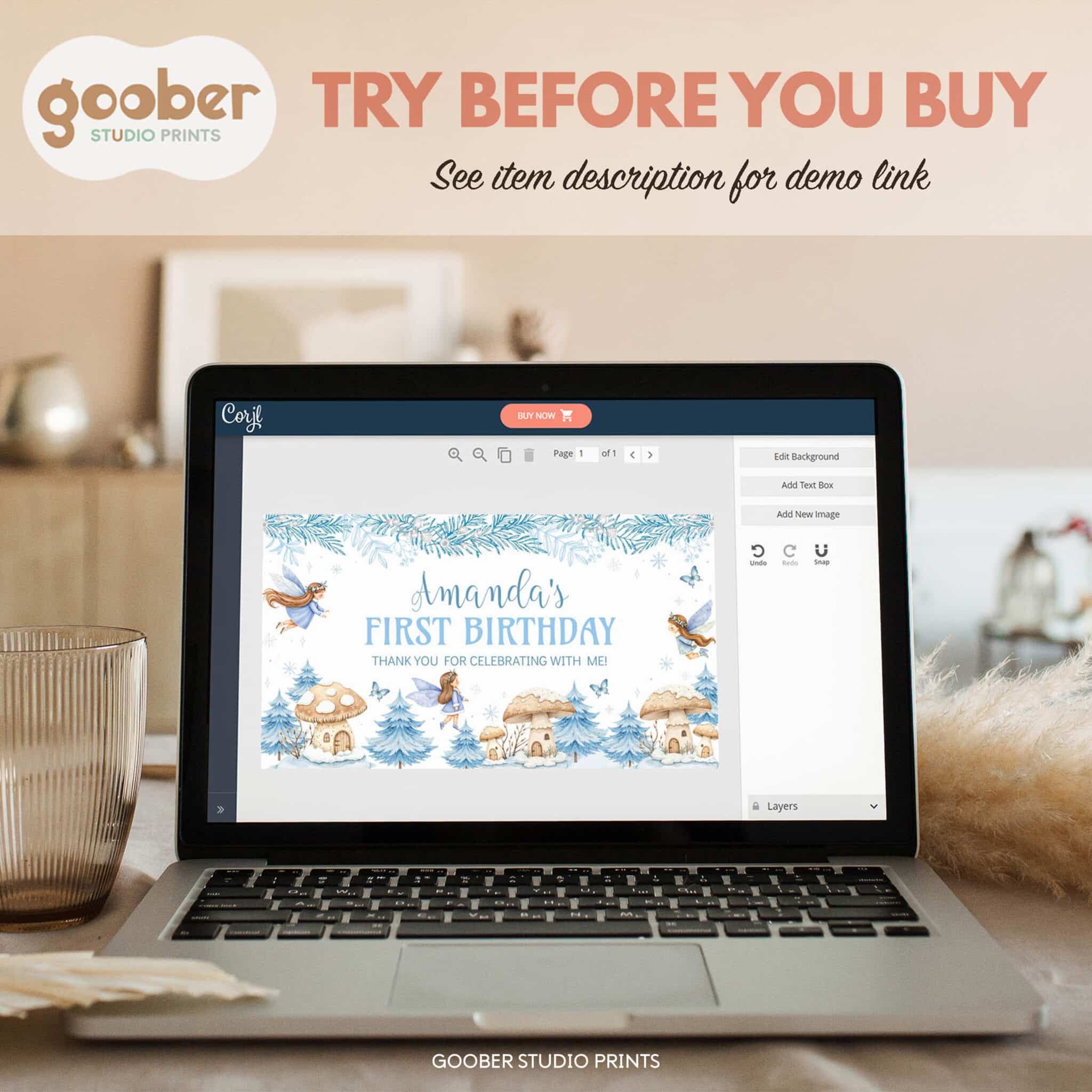 1. After you place an order you will receive an email from Corjl to access your editable template. Please remember to provide your email at checkout.